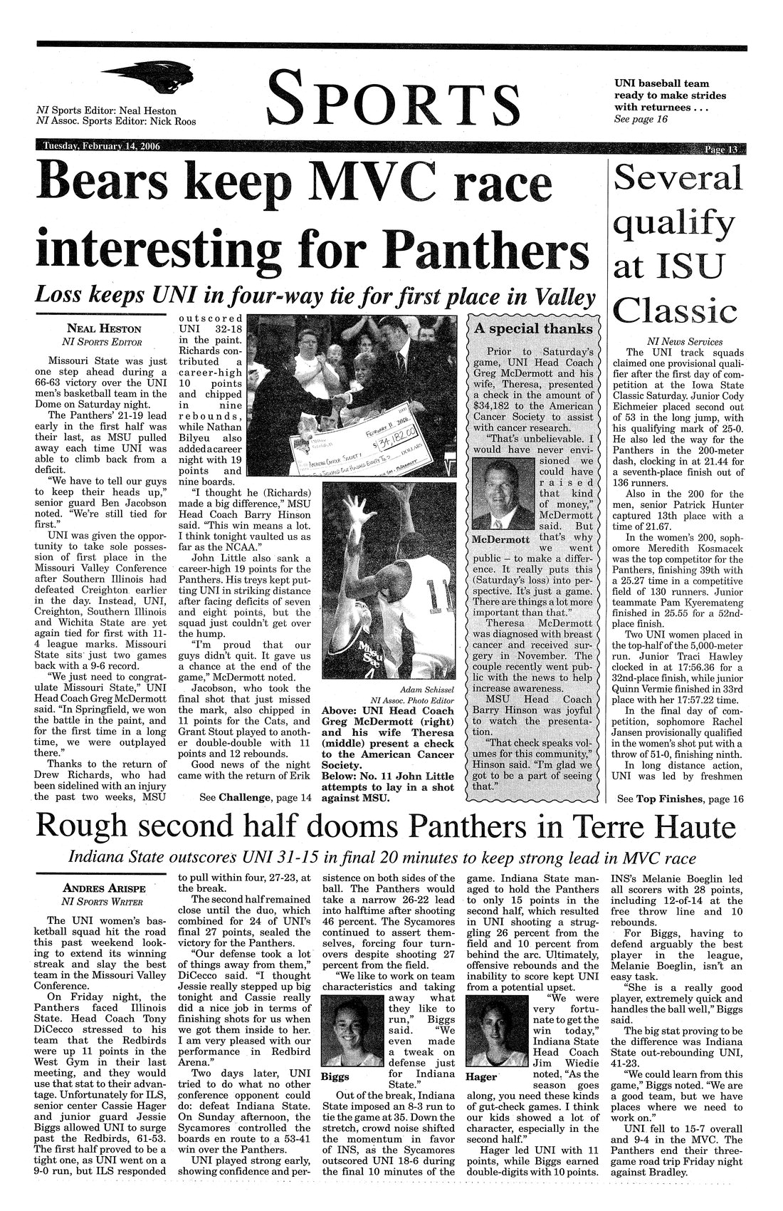 | Bears keep MVC race interesting for Panthers; loss keeps UNI in four-way tie for first place in Valley | Basketball team lost to Missouri State and will take on Indiana State; photo. |