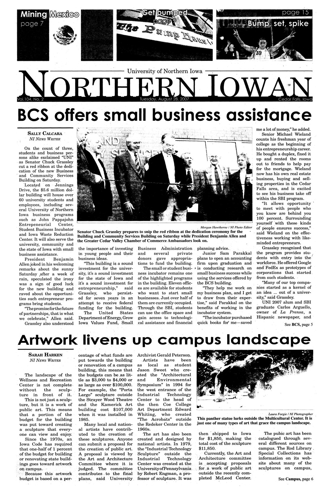 | BCS offers small business assistance | Business and Community Services Building dedicated at UNI on August 25, 2007; survey of operations in the building; photo. |