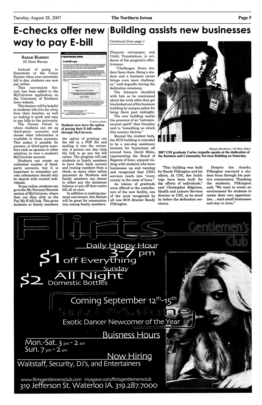 | E-checks offer new way to pay E-bill | Students can now pay their university bills online; via MyUniverse. |