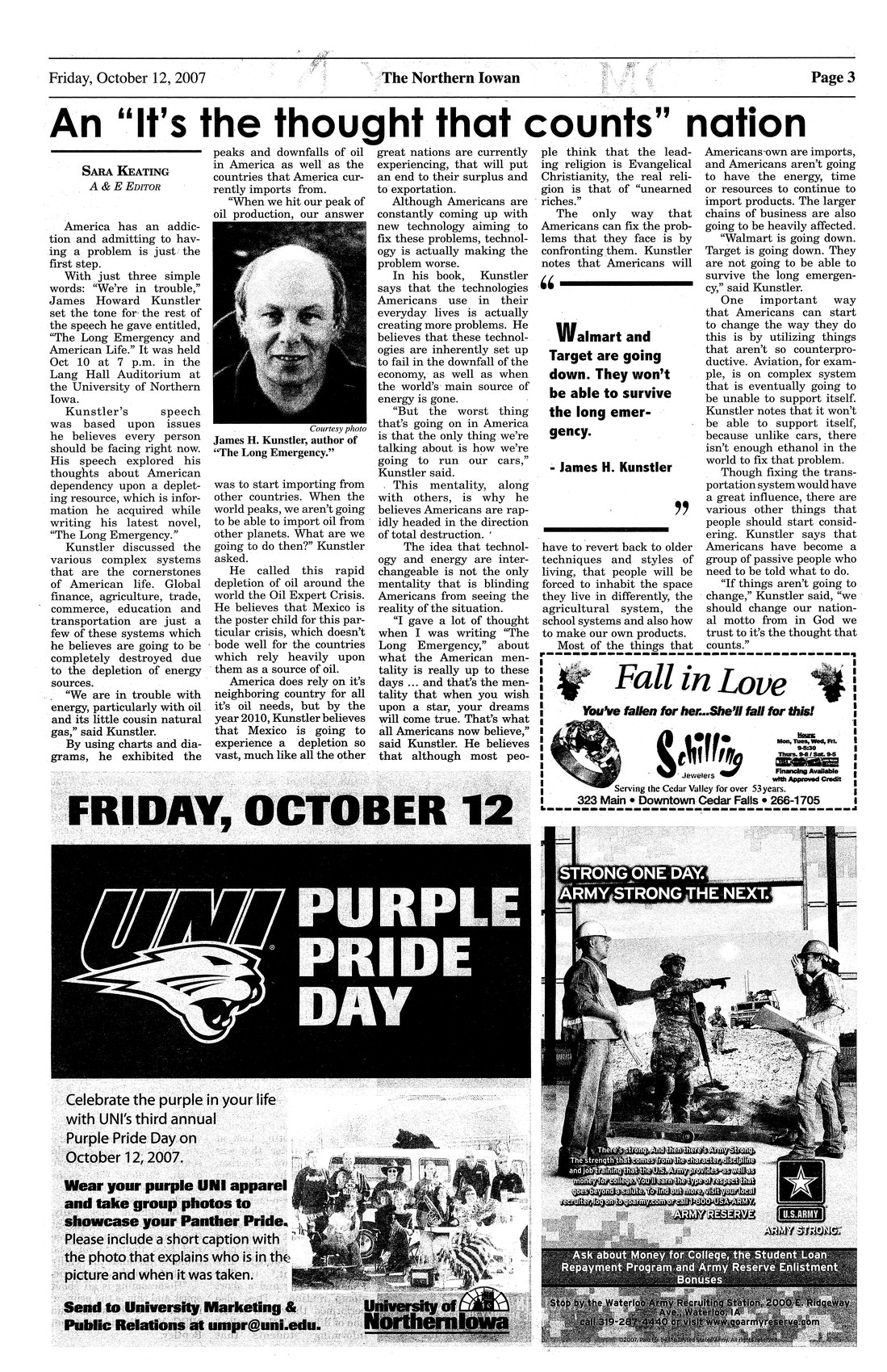 | An "It's the thought that counts" nation | James H. Kunstler speech on October 10th was entitled, "The Long Emergency and American Life"; talks about problems with oil supply; photo. |
