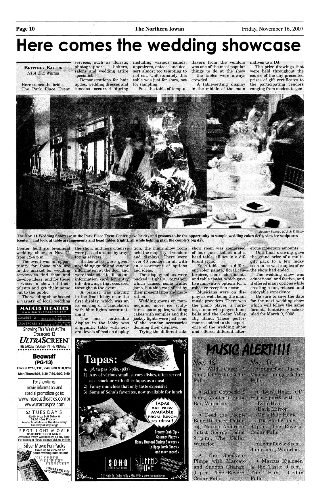 | Here comes the wedding showcase | Review of the bi-annual wedding show; held November 11 at the Park Place Event Center; photo. |