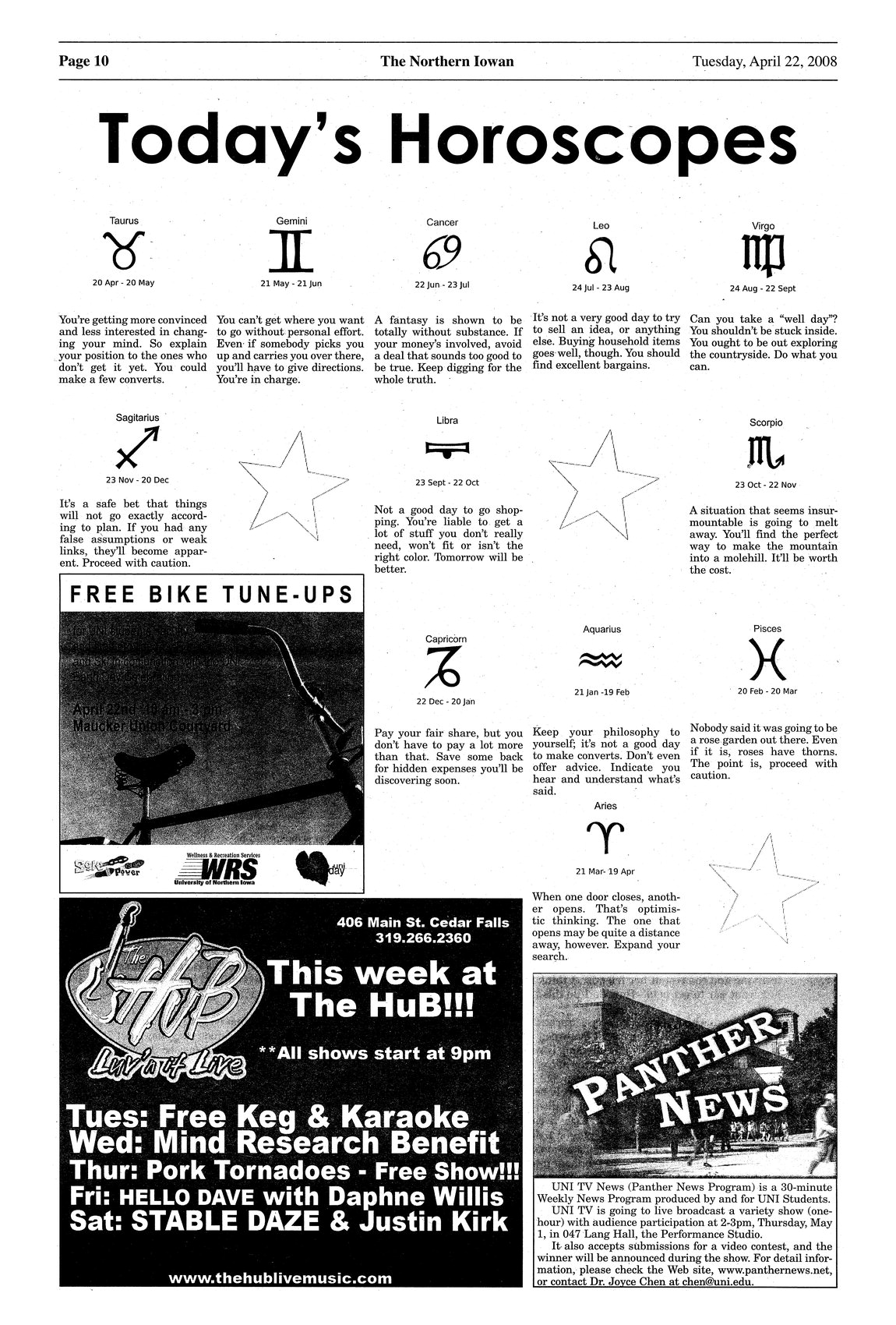 | Panther News | Announcement of thirty minute Weekly News Program produced by and for UNI students; gives website and contact information.; photo. |
