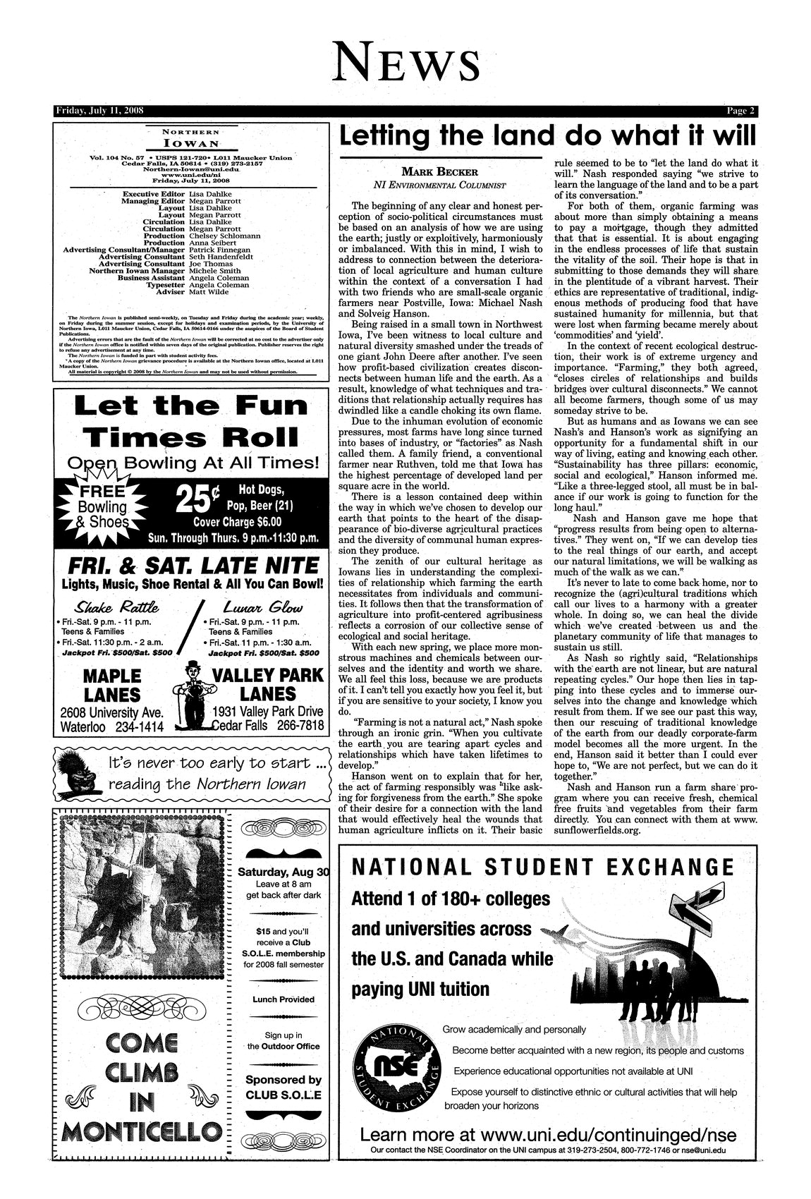 | Letting the land do what it will | Believes that conventional agriculture is destructive; maintains that organic farming might be the better way to go. |
