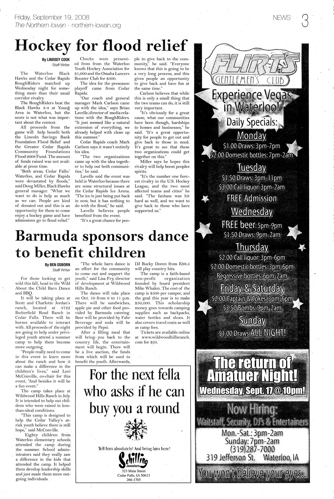 Hockey for flood relief Proceeds from the Waterloo Black Hawks/Cedar Rapids Rough Rider hockey match will benefit those affected by flooding.