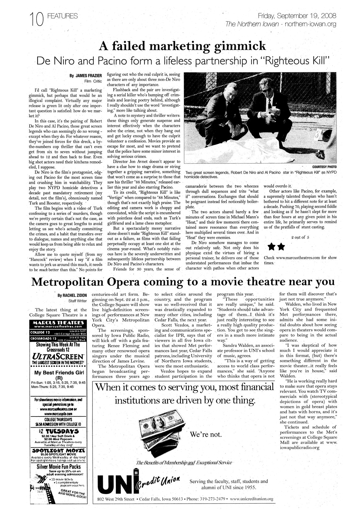 | A failed marketing gimmick | The movie "Righteous Kill" is reviewed; photo. |