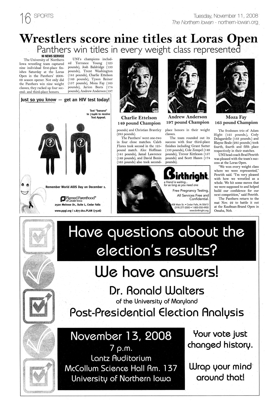 | Wrestlers score nine titles at Loras Open; Panthers win titles in every weight class represented | Performance also includes four second and third places; photo. |