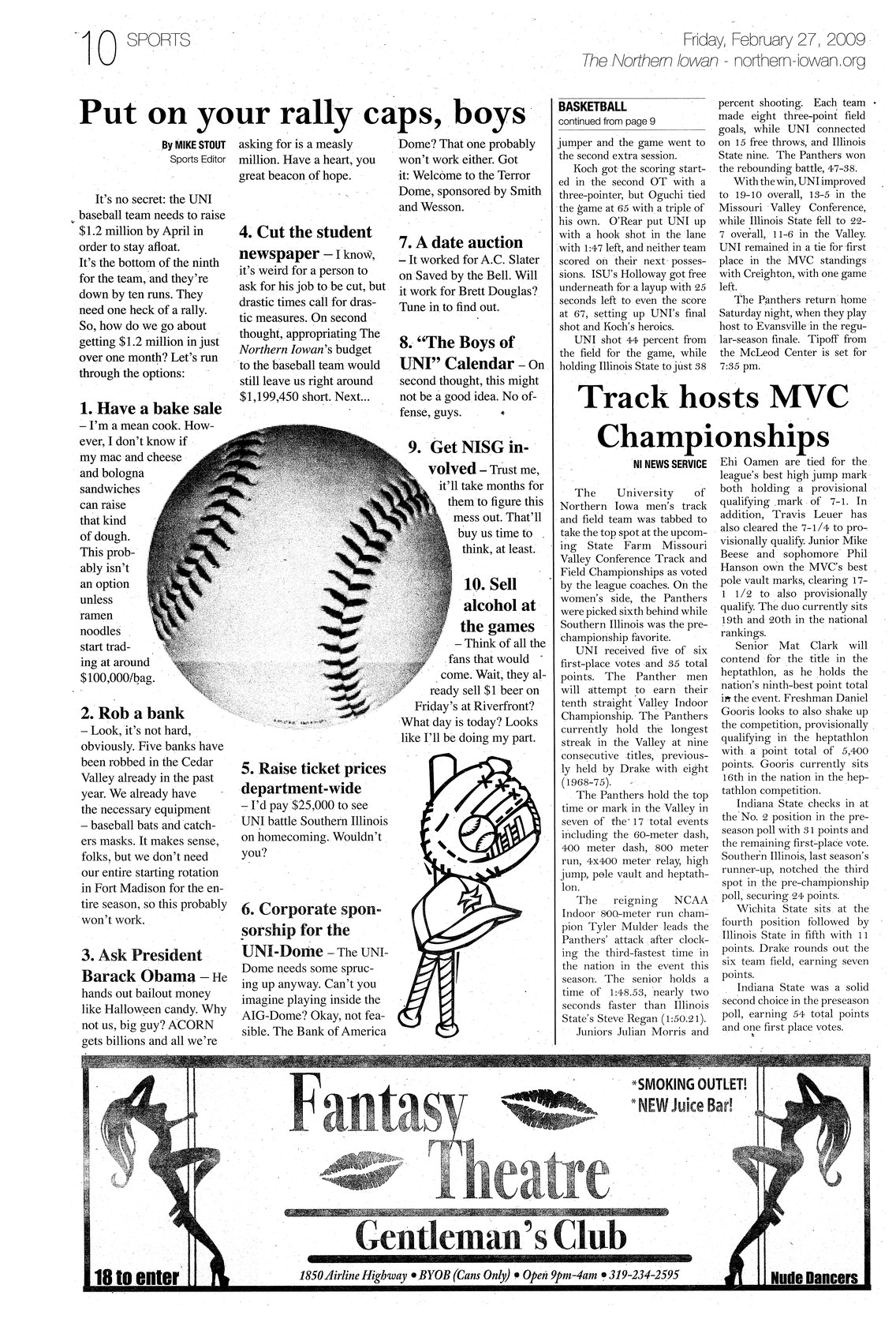 | Put on your rally caps, boys | Ten suggestions for raising money to save the baseball program. Ideas are very much tongue in cheek. |