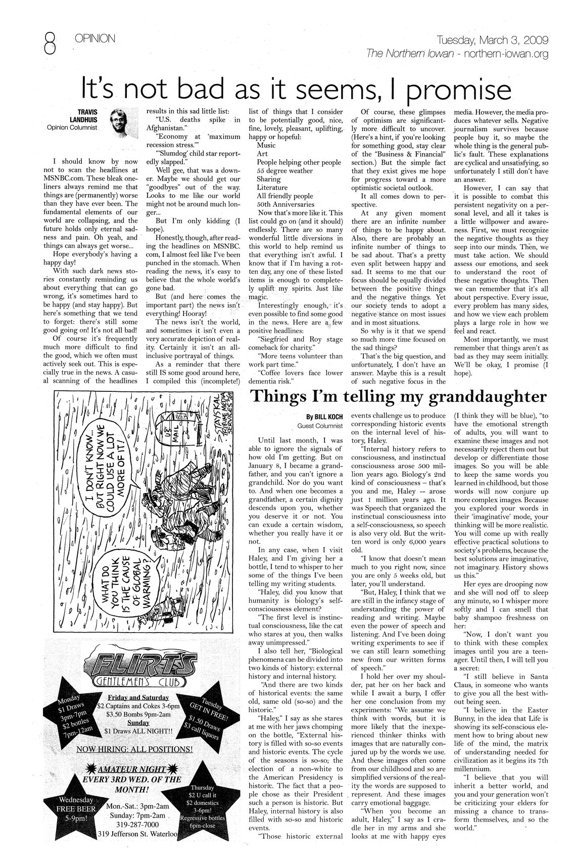 | It's not bad as it seems, I promise | Finding good news among the headlines is difficult, but not impossible. Times are changing, but we as a people will survive and adjust to the changes that are ahead. |