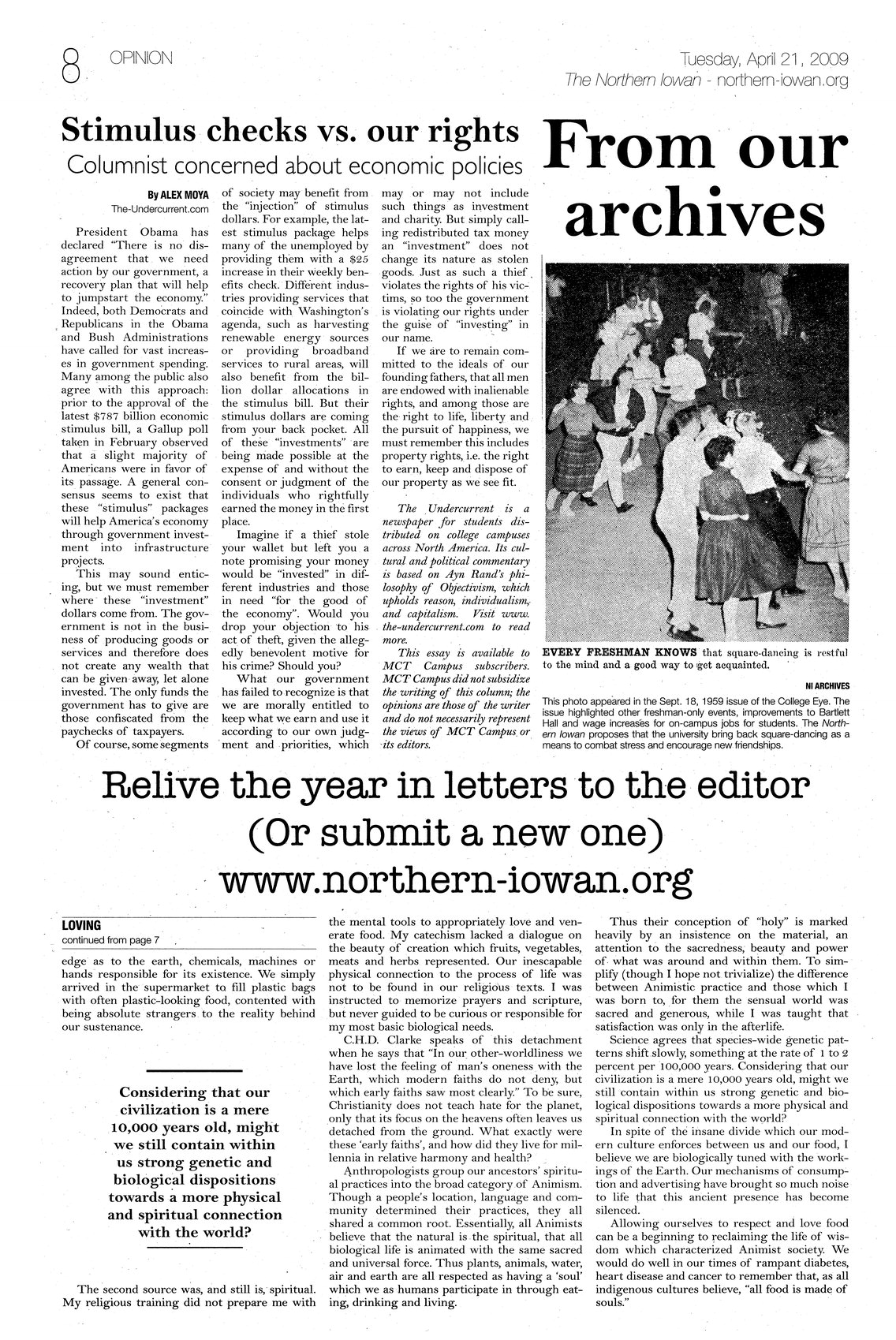 From our archives Square dancing photo from the September 18, 1959 issue of the College Eye. Other news covered in the issue included freshman events, improvements to Bartlett Hall, and wage increases for on-campus student jobs.