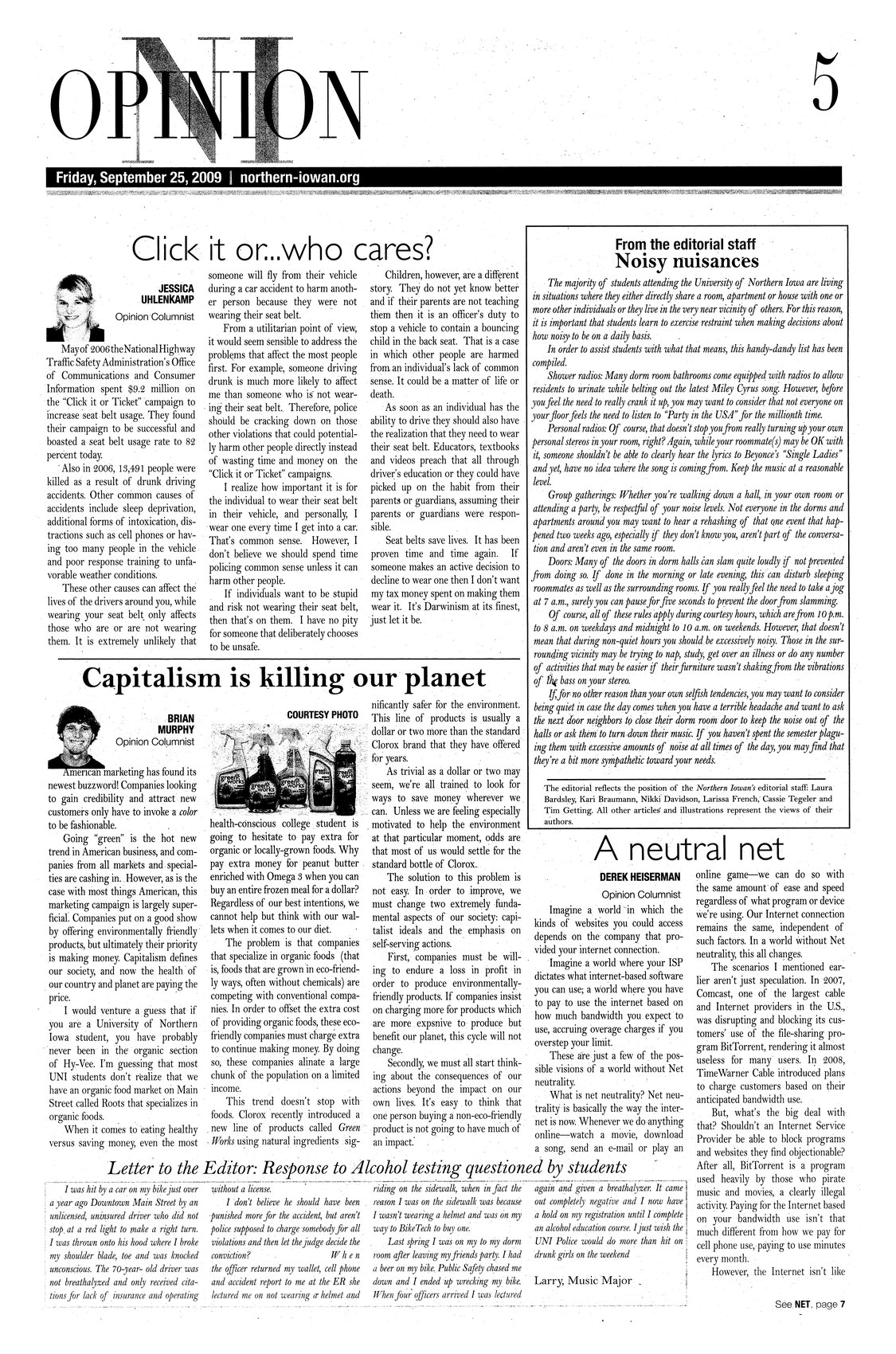 | Click it or who cares? | Using seat belts saves lives. The "Click it or Ticket" campaign of 2006 cost over nine million dollars; raising the use of seatbelts to eighty-two per cent. Was that money well spent? |