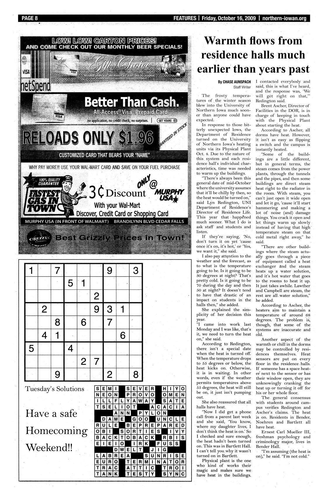 | Warmth flows from residence halls much earlier than years past | Due to the unusual cold temperatures, the physical plant has turned on the heat to campus buildings. Weather forecasts and student comments are taken into account in making the decision. |