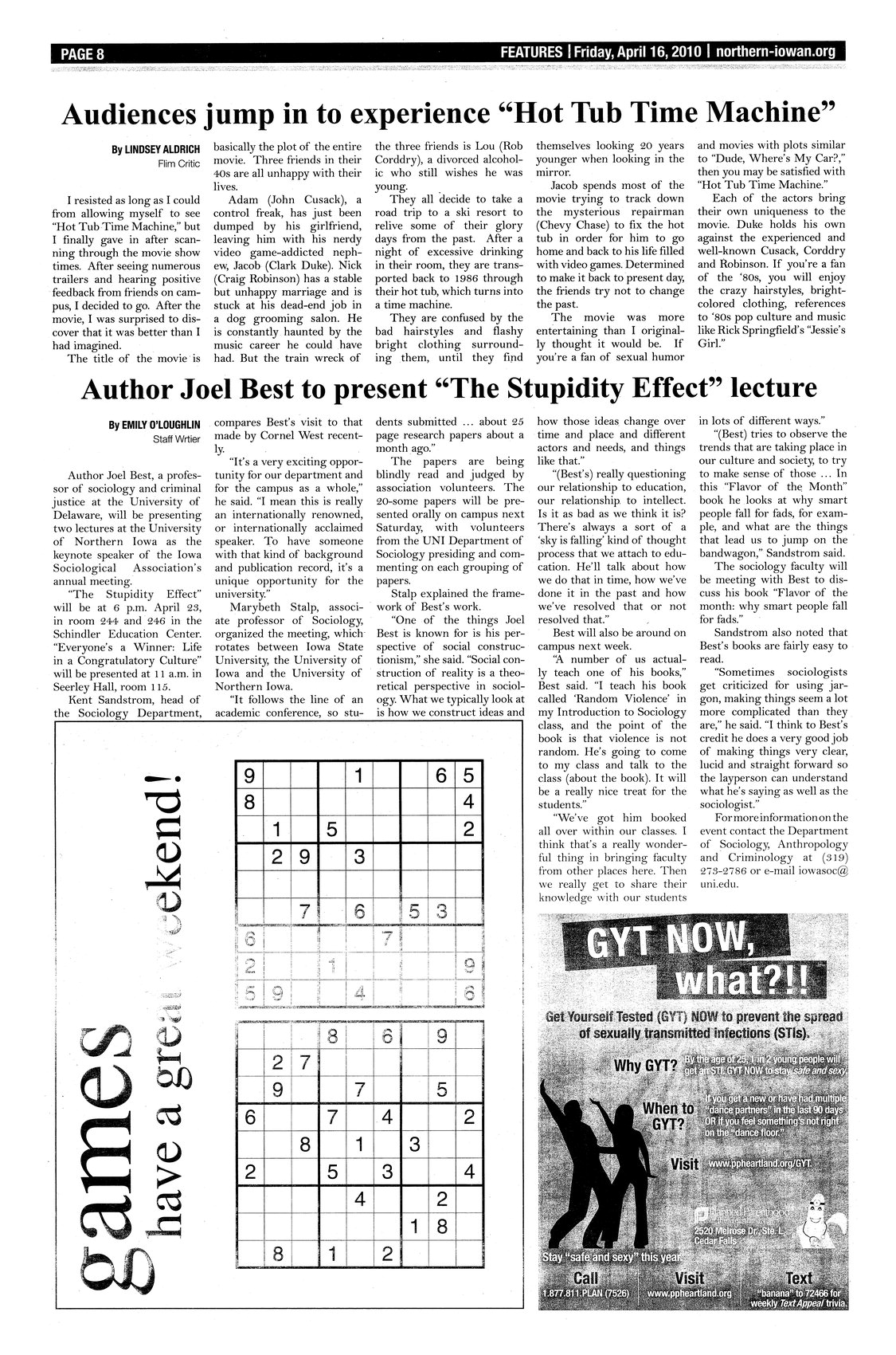 | Audiences jump in to experience "Hot Tub Time Machine" | The movie, "Hot Tub Time Machine", is reviewed. |