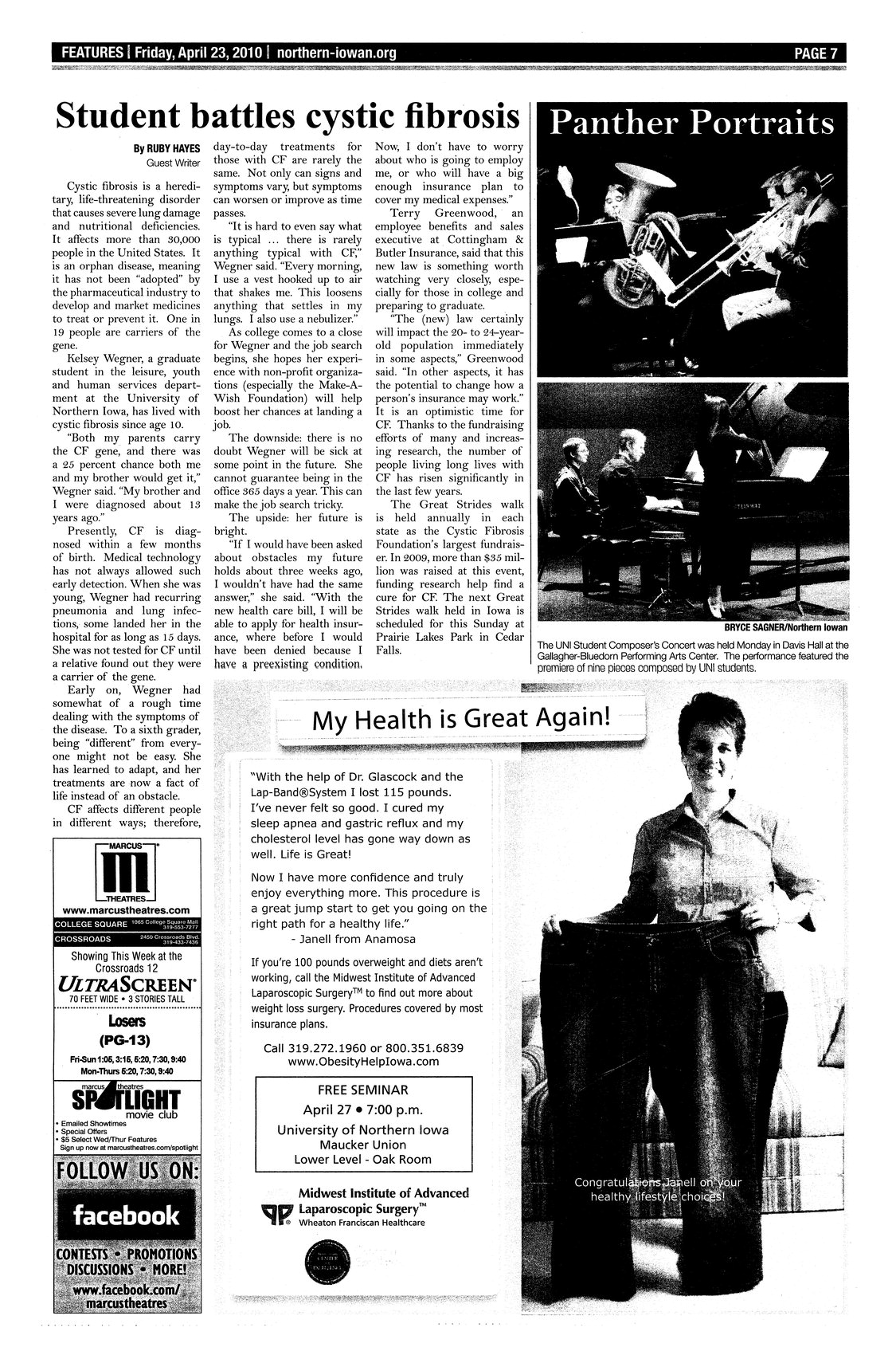 | Student battles cystic fibrosis | Graduate student Kelsey Wegner talks about how she deals with cystic fibrosis; Great Strides walk benefits research on the disease. |