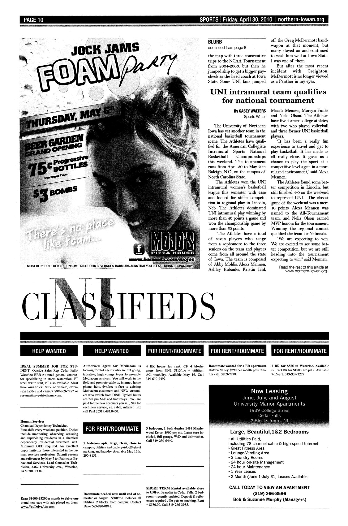 | UNI intramural team qualifies for national tournament | The Athletes won the UNI intramural women's basketball tournament easily. The team then won the regional and will now play on the campus of North Carolina State this weekend. |