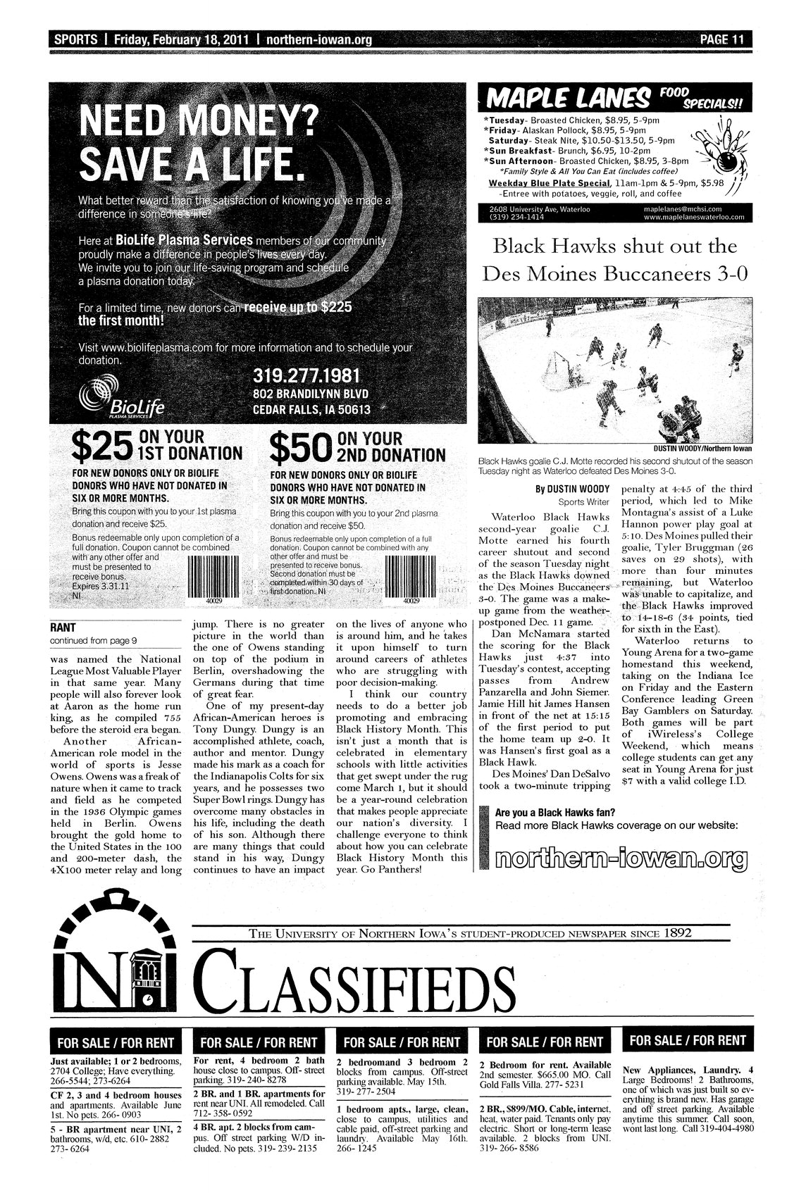| Black Hawks shut out the Des Moines Buccaneers 3-0 | C. J. Motte earned his fourth career shutout and second of the season in a game against Des Moines; photo. |