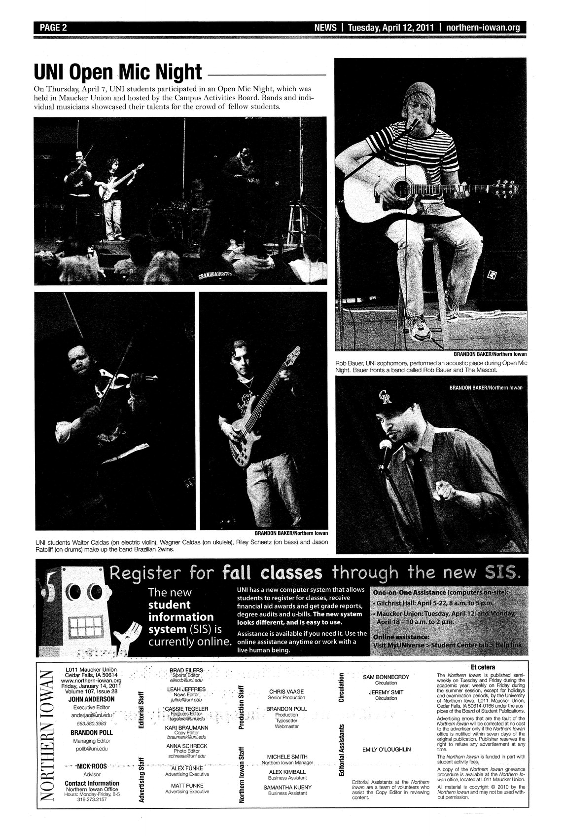 | UNI Open Mic Night | Bands and individual musicians showcased their talents in Maucker Union; photo. |