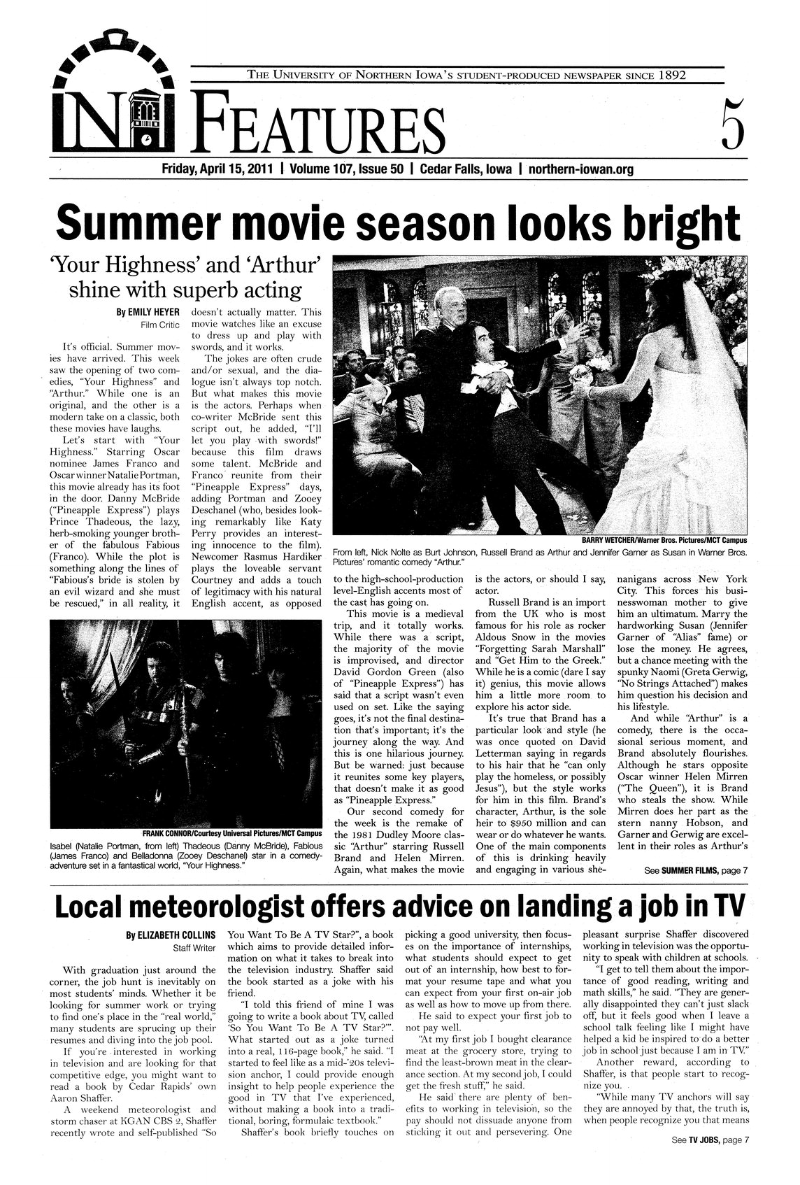 | Summer movie season looks bright | The movies "Arthur" and "Your Highness" are reviewed; photo. |
