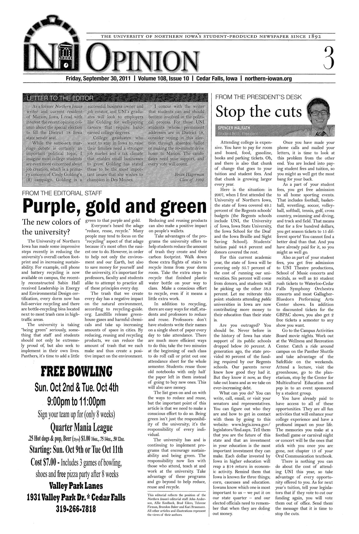 | Stop the cuts | Students urged to contact legislators concerning the seemingly never ending cuts to education funding. Students now contribute more toward their education than does that state. Take advantage of all the available programs. |