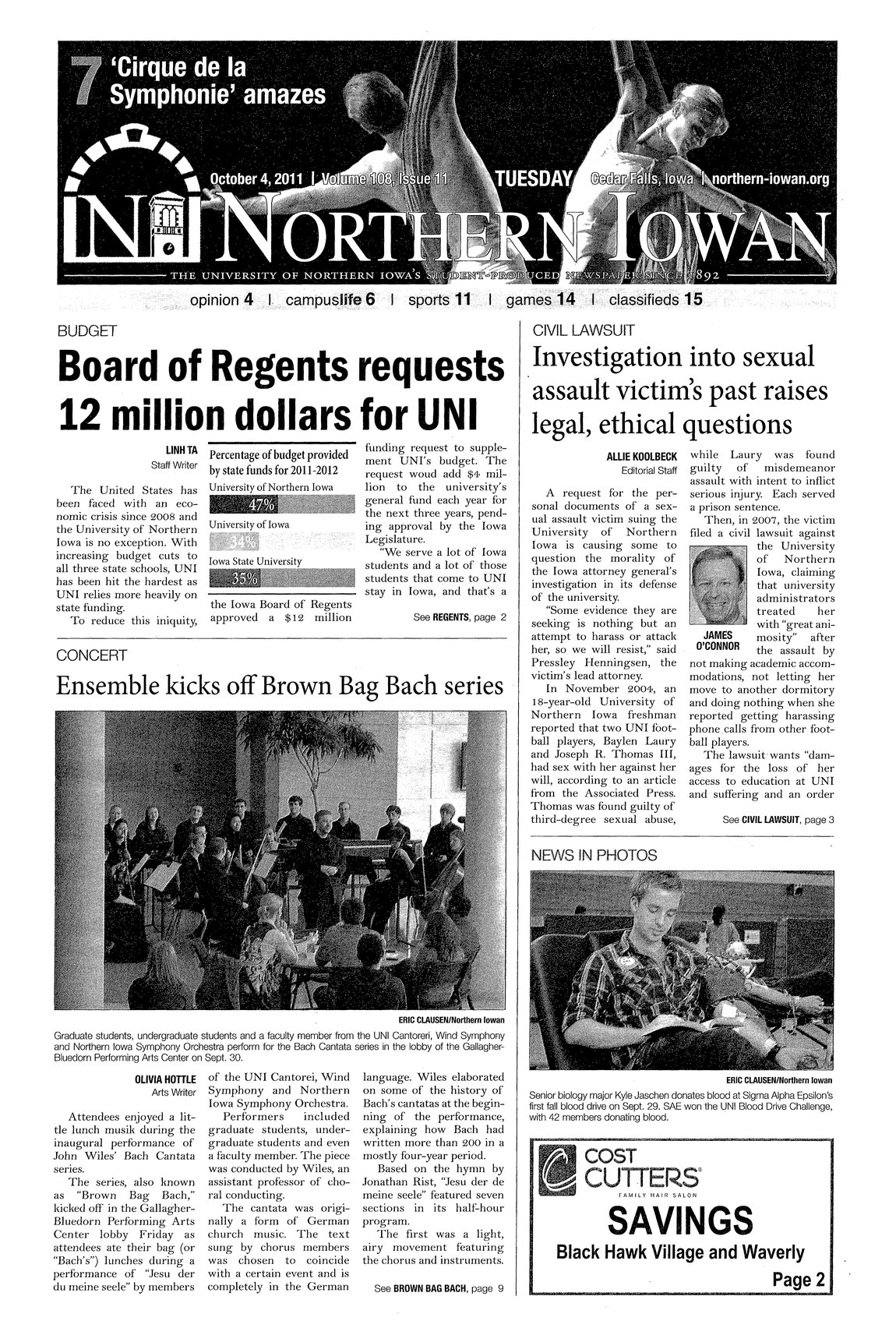 | Board of Regents requests 12 million dollars for UNI | UNI relies more heavily on state funding than the other Regents institutions. To reduce the inequity, addition funding for UNI has been requested. $4 million would be added to the budget for each of the next three years; photo. |