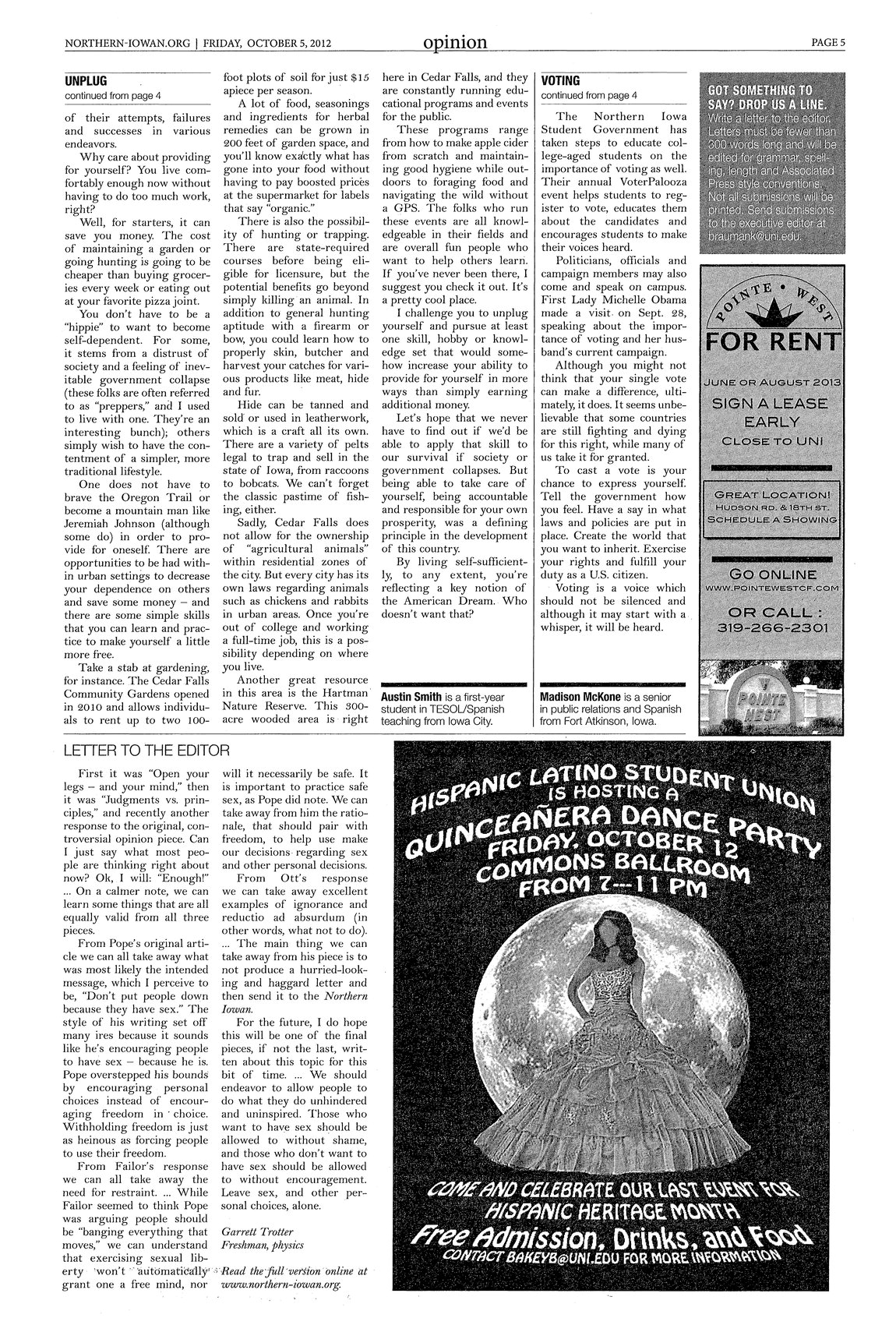 Letter to the editor Response to previous letters on the topic of personal choices concerning having sex. Author hopes this will be one of the last pieces about this topic for awhile. Students are encouraged to leave sex, and other personal choices, alone.