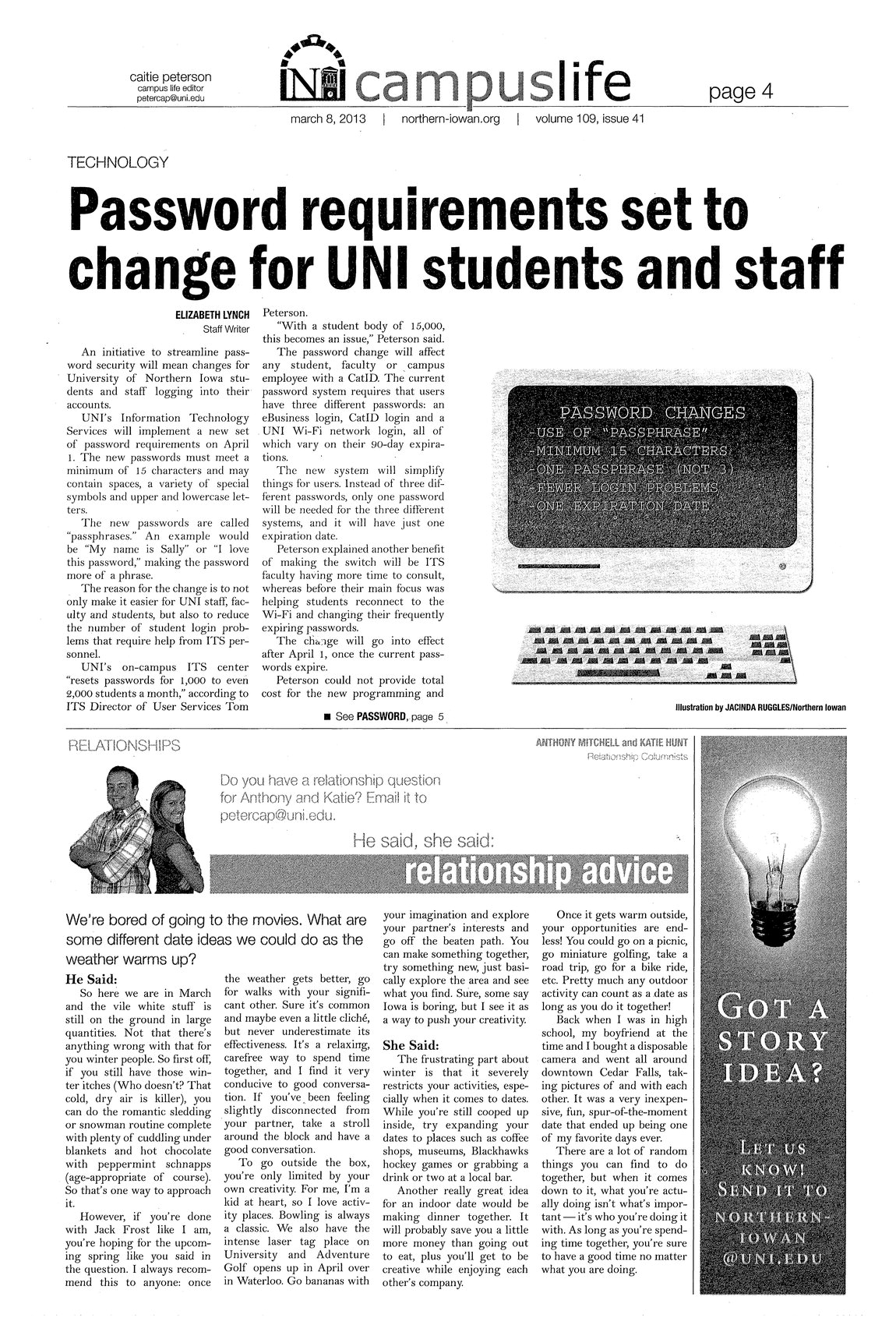 | Password requirements set to change for UNI students and staff | The password requirements for logging into UNI accounts will change in April. They will make things easier and more efficient; photo. |