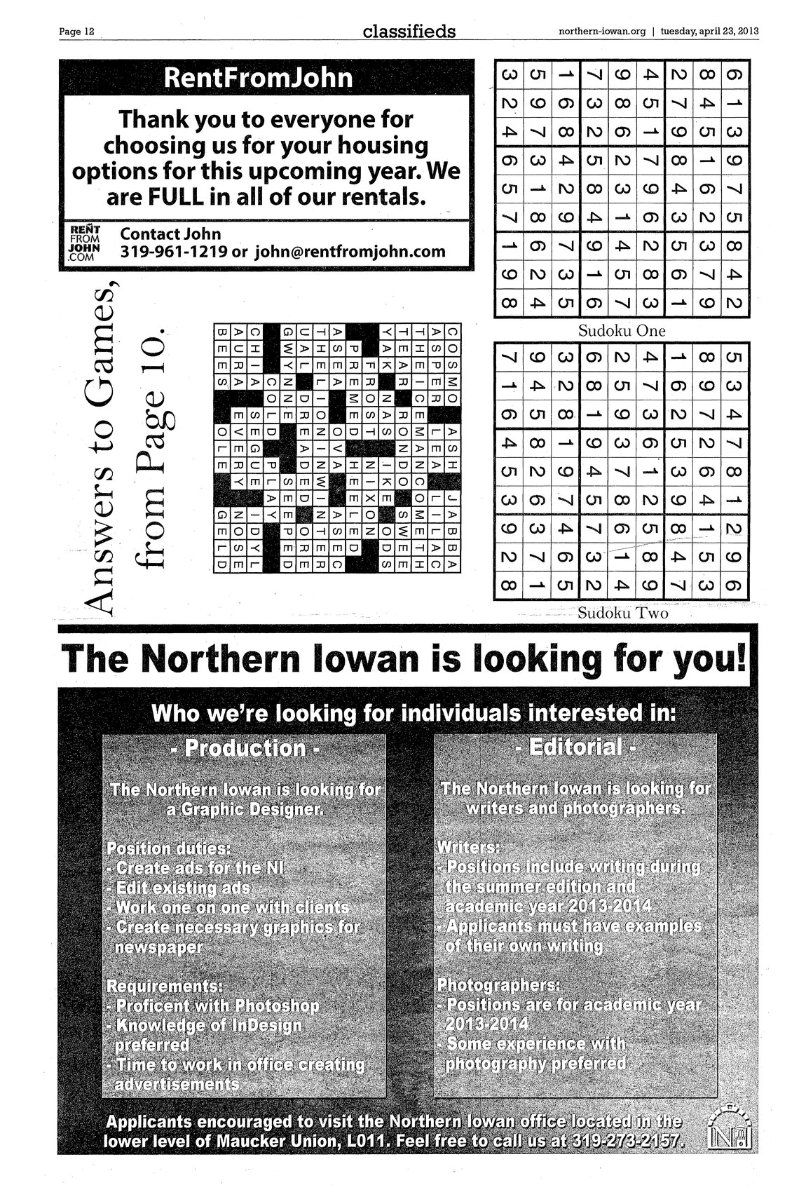 | The Northern Iowan is looking for you! | Outline of duties in production and editorial areas for the 2013-2014 Northern Iowan. |
