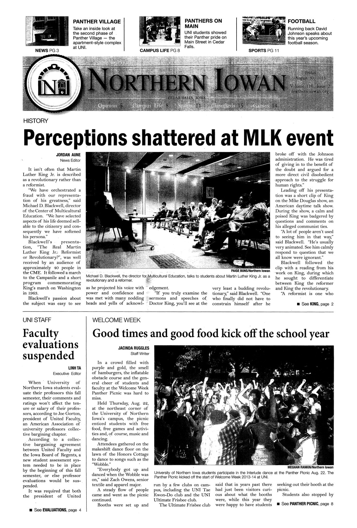 | Perceptions shattered at MLK event | Michael D. Blackwell, director of the Center of Multicultural Education, gave a presentation entitled "The Real Martin Luther King Jr.: Reformist or Revolutionary?". Students found the presentation very informative; photo. |