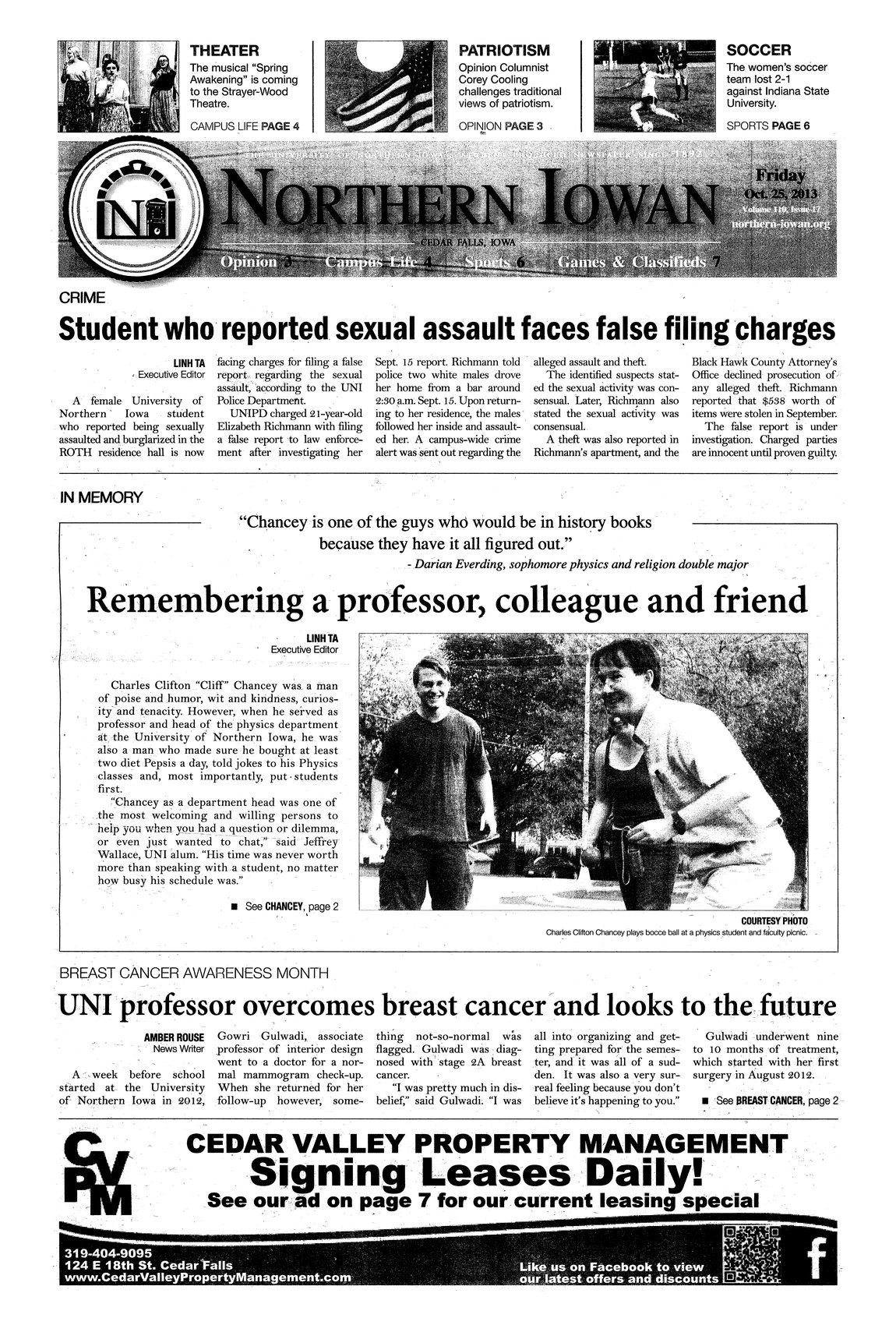 | Student who reported sexual assault faces false filing charges | A sexual assault was reported in ROTH residence hall on September 15. Since then, the police have uncovered that the sexual activity was consensual. Elizabeth Richmann, the woman that reported the assault, is facing false filing charges. |