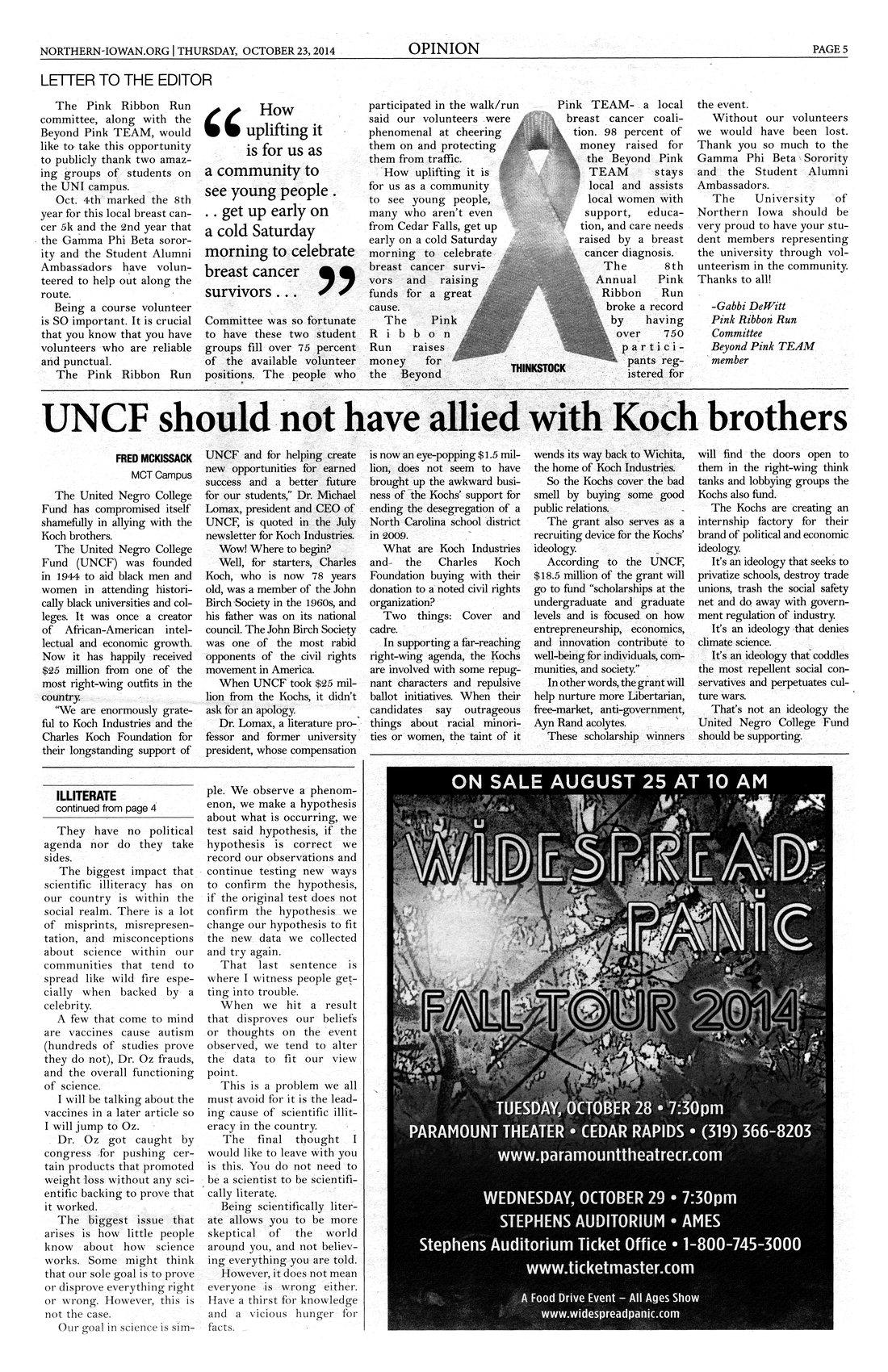| Letter to the editor | Gabbi DeWitt of the Pink Ribbon Run Committee writes to the Northern Iowan thanking Gamma Phi Beta and the Student Alumni Ambassadors for their help with the Pink Ribbon Run; photo. |