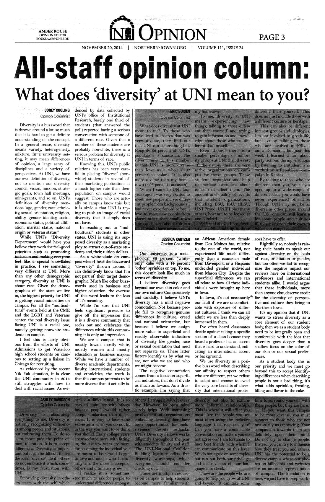 All staff opinion column: What does 'diversity' at UNI mean to you? The Northern Iowan's opinion coulumnests take on the question of what diversity means to them, and if UNI is doing a good enough job meeting their expectations.