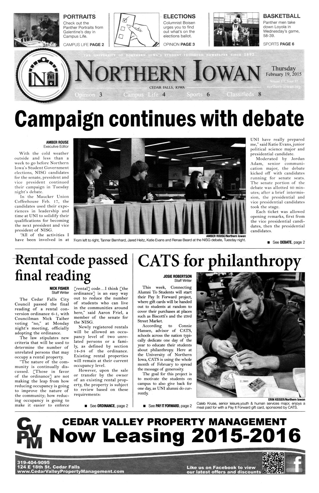 | Campaign continues with debate | The campaign for senate, president, and vice president are heating up; photo. |