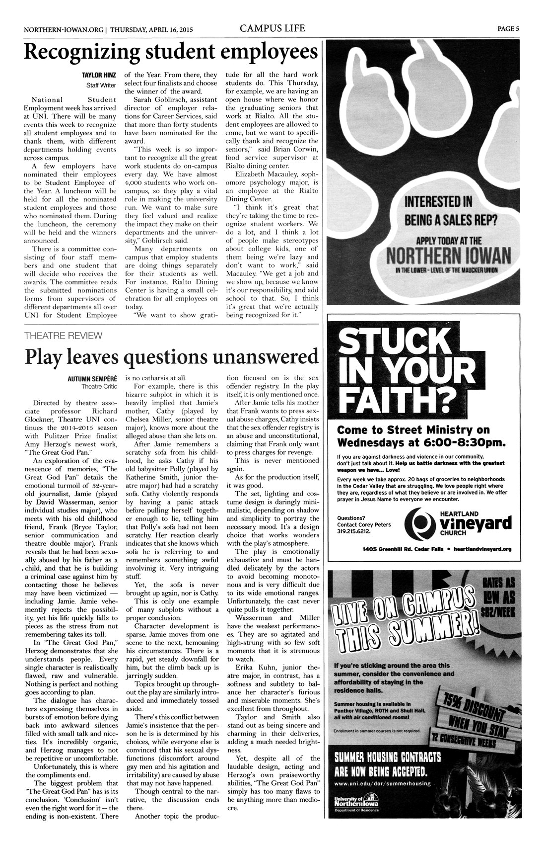 | Play leaves questions unanswered | Autumn Sempere reviews Theater UNI's latest play "The Great God Plan". |