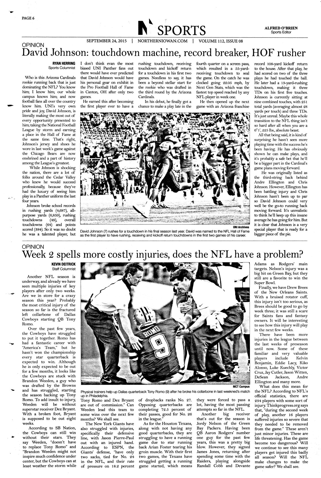 | David Johnson: touchdown machine, record breaker, HOF rusher | Herring highlights UNI's former football star David Johnson and his career with the Arizona Cardinals; photo. |