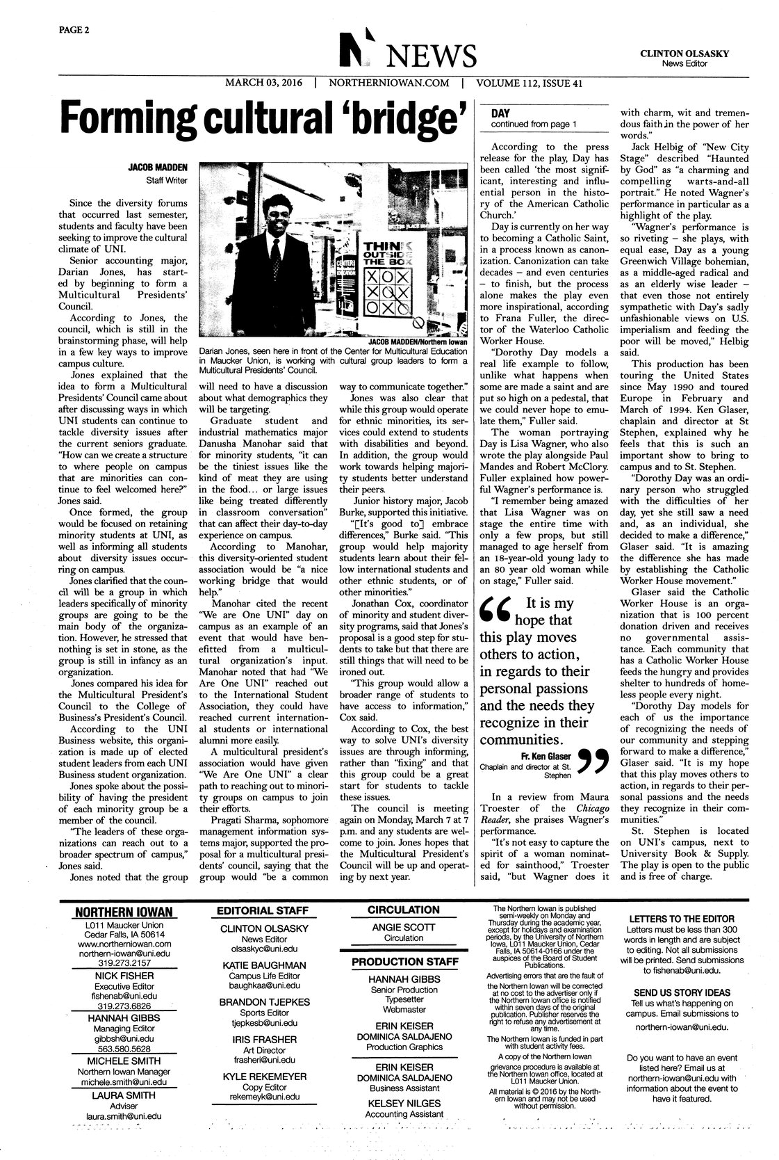 | Forming cultural 'bridge' | Student Darian Jones has proposed forming a Multicultural Presidents' Council to communicate diversity issues more effectively across campus; photo. |
