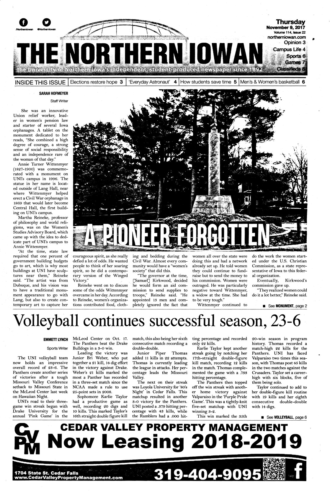 The women's volleyball team lost to Missouri State; defeated Drake University, 3-0; Loyola University, 3-0; and Valparaiso University, 3-2; lost to Illinois State University, 2-3; defeated Bradley University, 3-0; and defeated Indiana State University. Their overall record is 23-6.