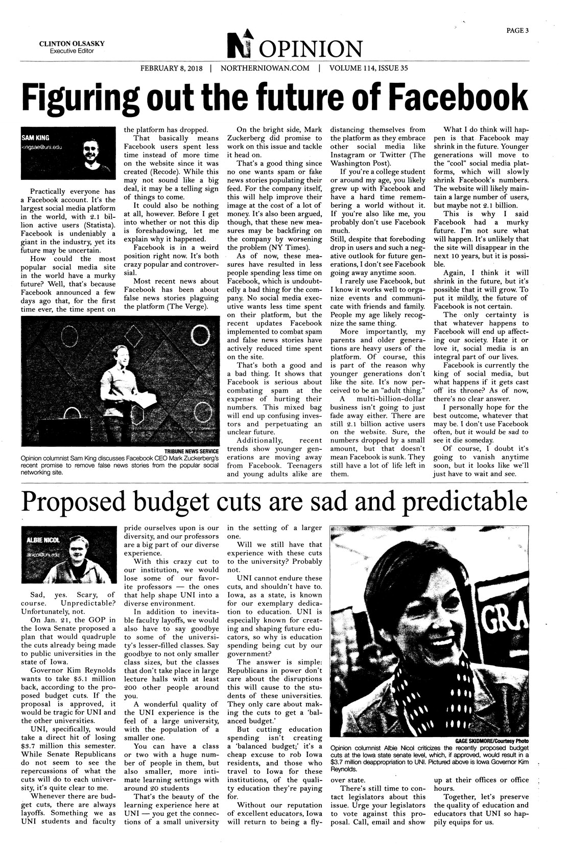 | Proposed budget cats are sad and predictible | The author laments on the recent proposed budget cuts and how they would affect UNI. |