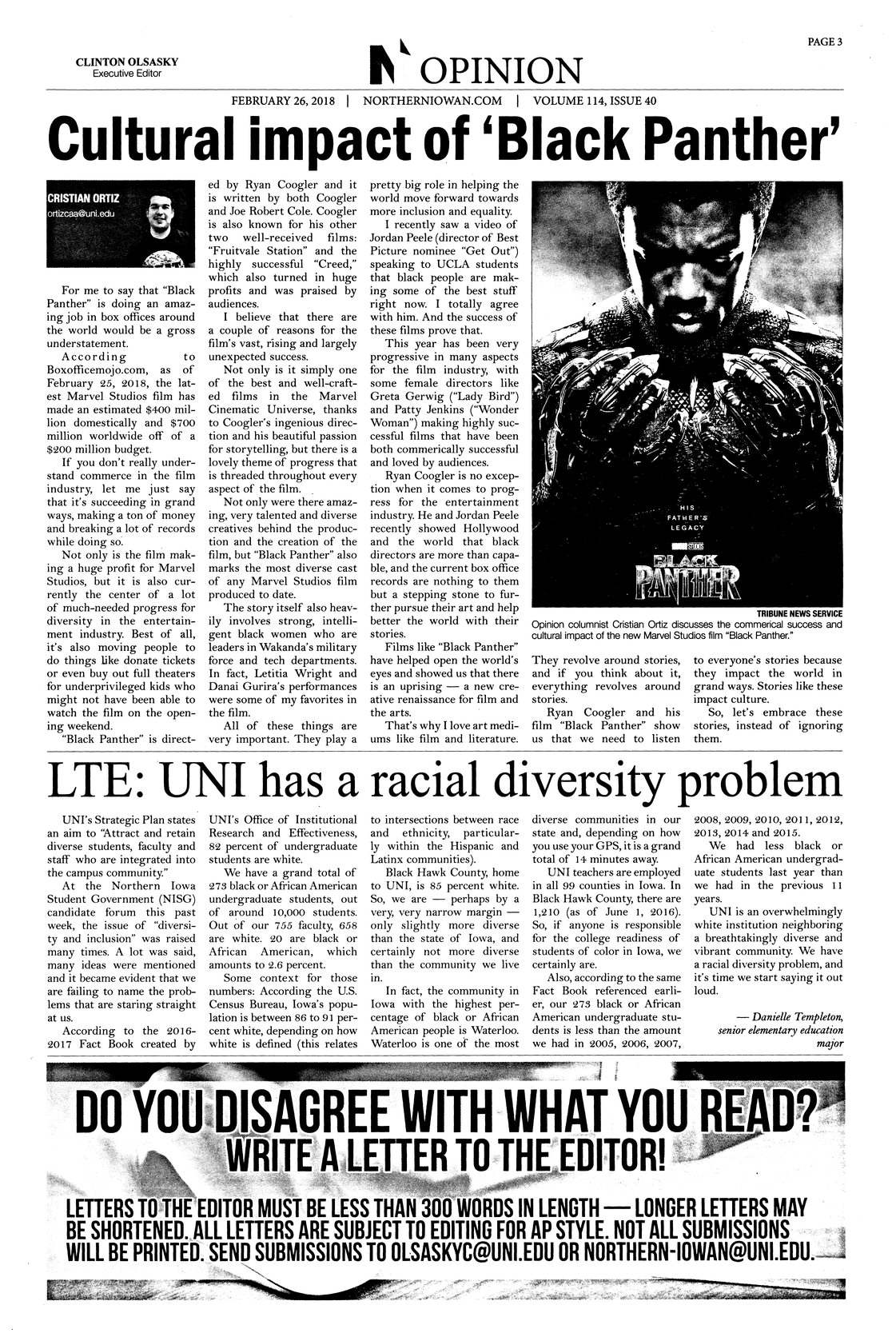 | Cultural Impact of 'Black Panther' | The author talks on the cultural significance of Black Panther. |