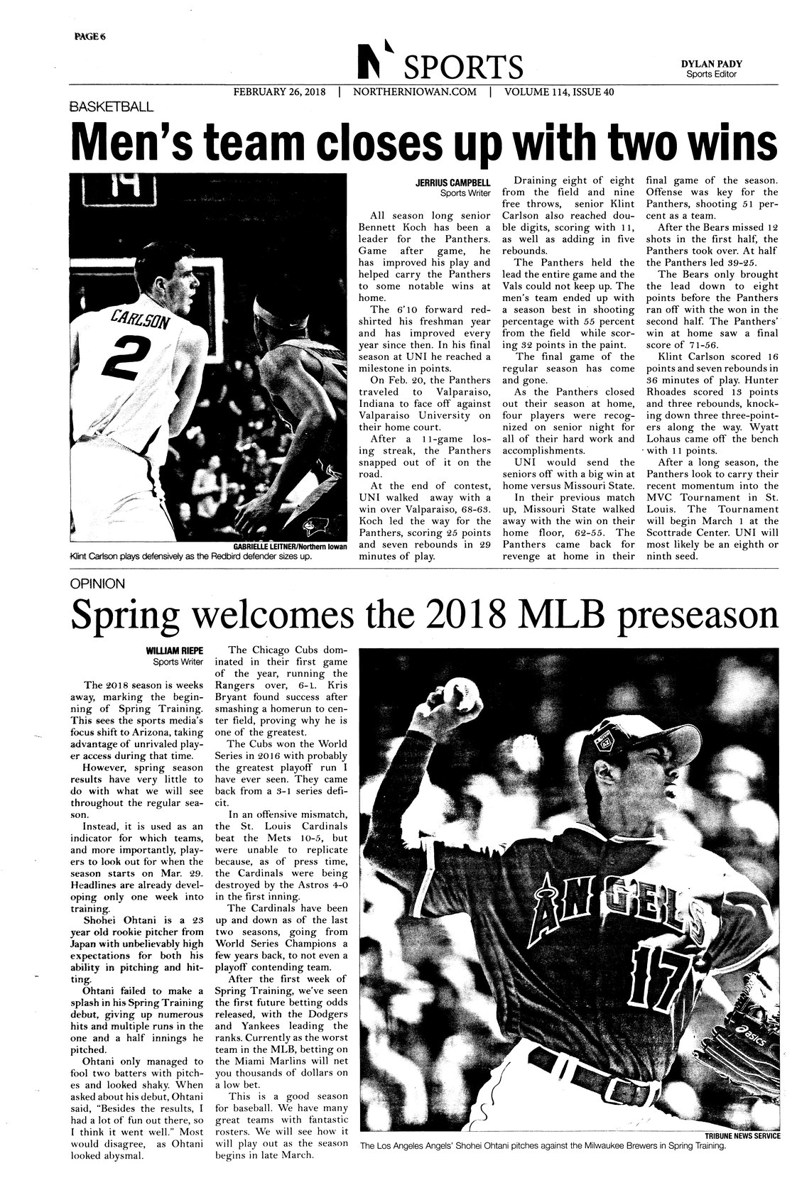 | Men's team closes up with two wins | The men's basketball team has finished off their season with two wins and are headed to the MVC tournament in St. Louis. |