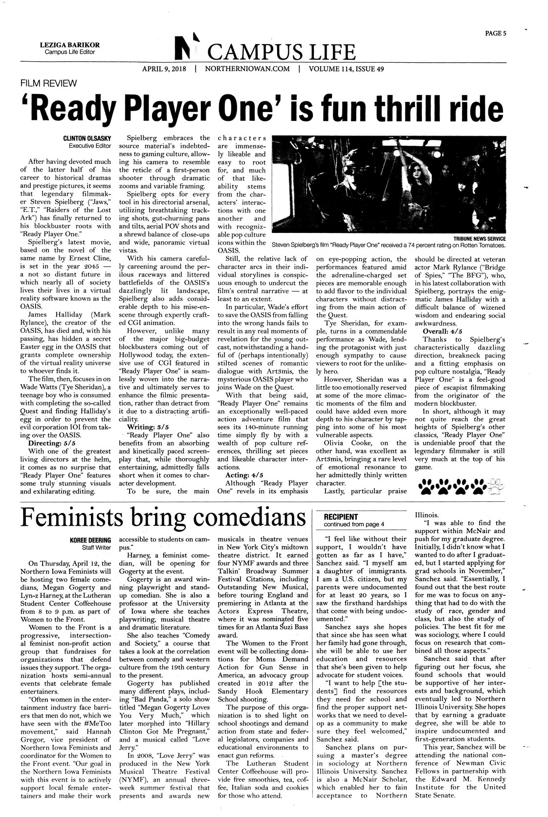 | 'Ready Player One' is a fun thrill ride | The author gives a positive review of Steven Spielberg's file 'Ready Player One.' |