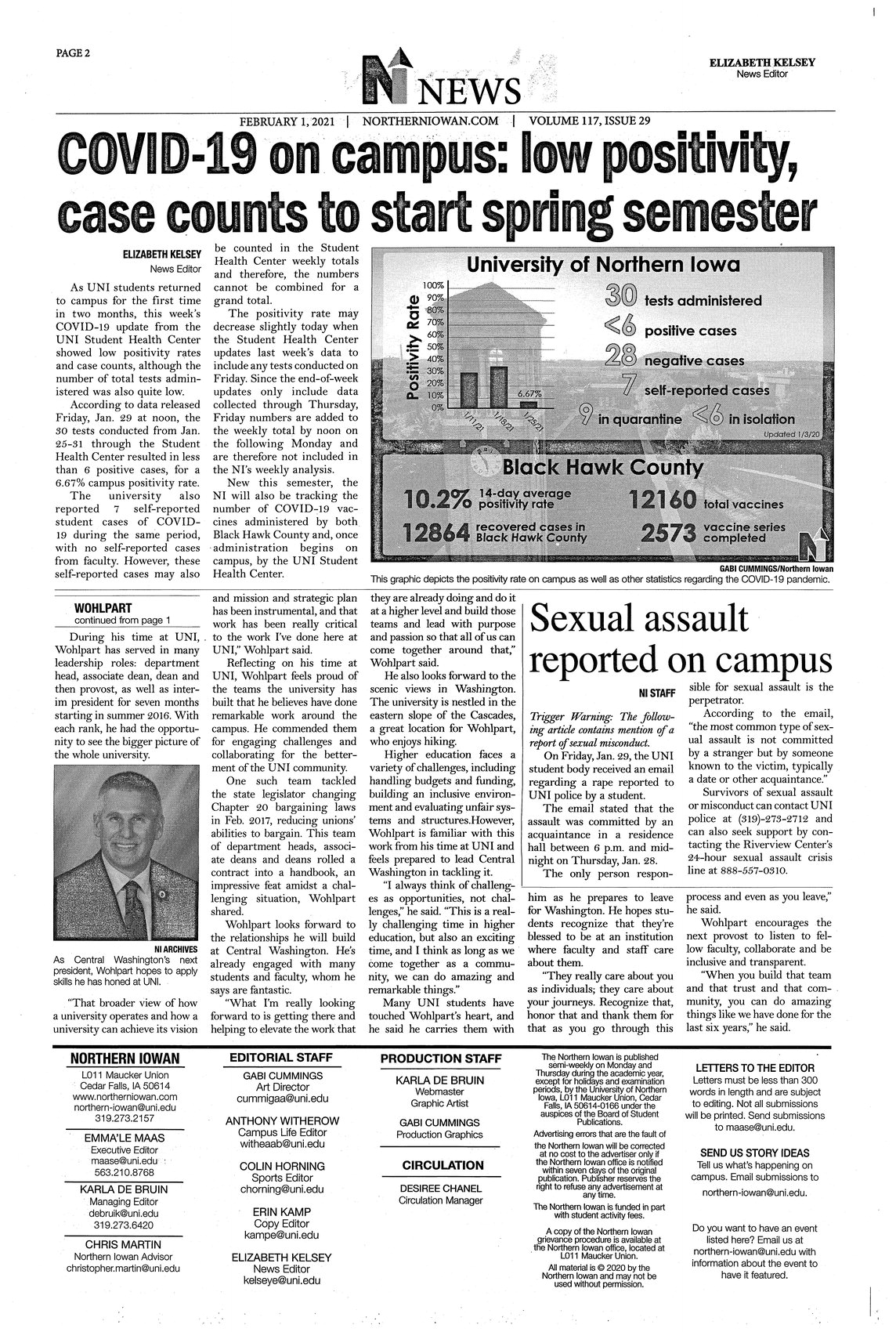| COVID-19 on campus: low positivity, case counts to start spring semester | Low positivity rates and case counts of COVID-19 have been reported on campus; photo. |