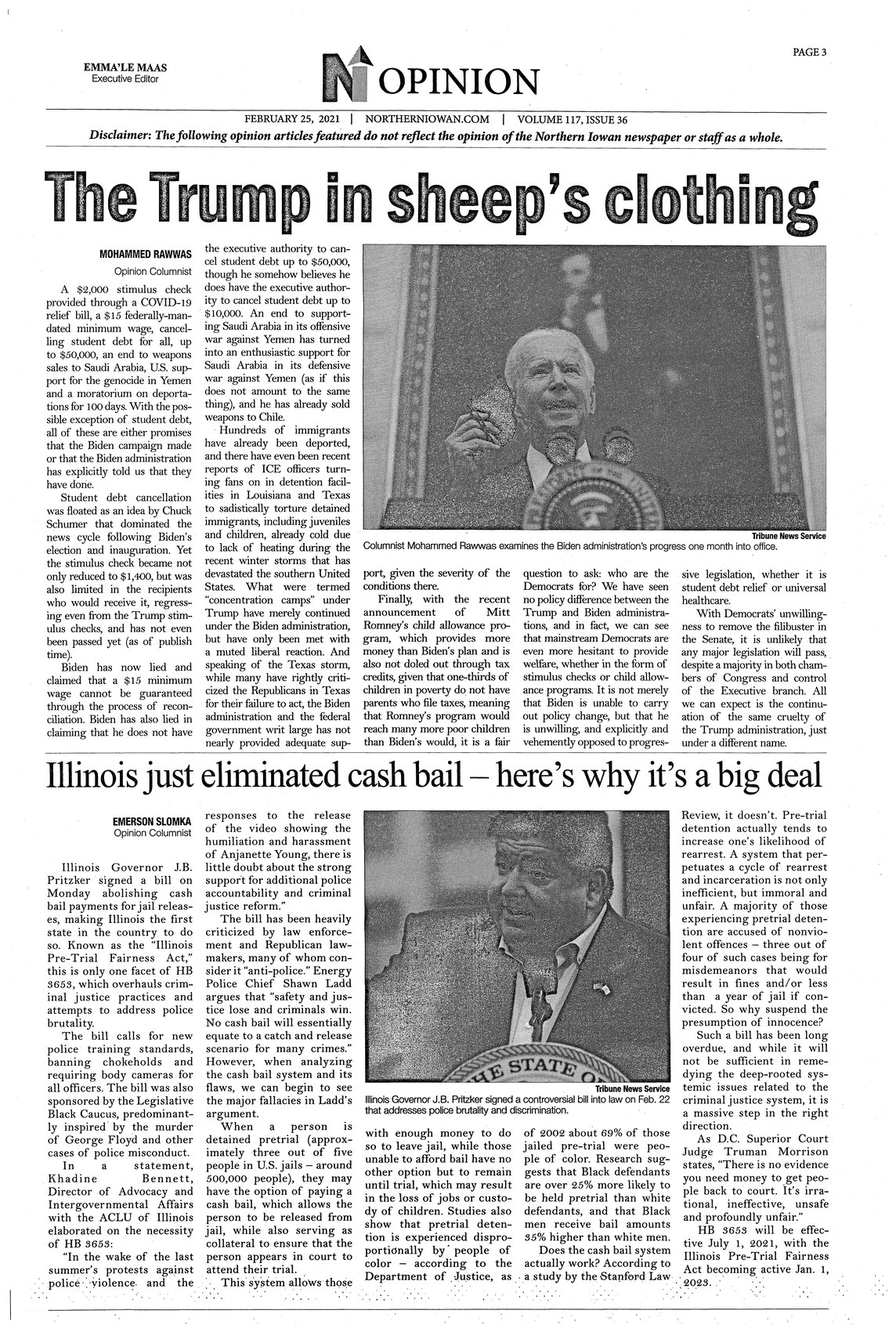 The Trump in sheep's clothing Rawwas examines promises President Biden made while campaigning and whether or not he has or will go through with them while in office; photo.
