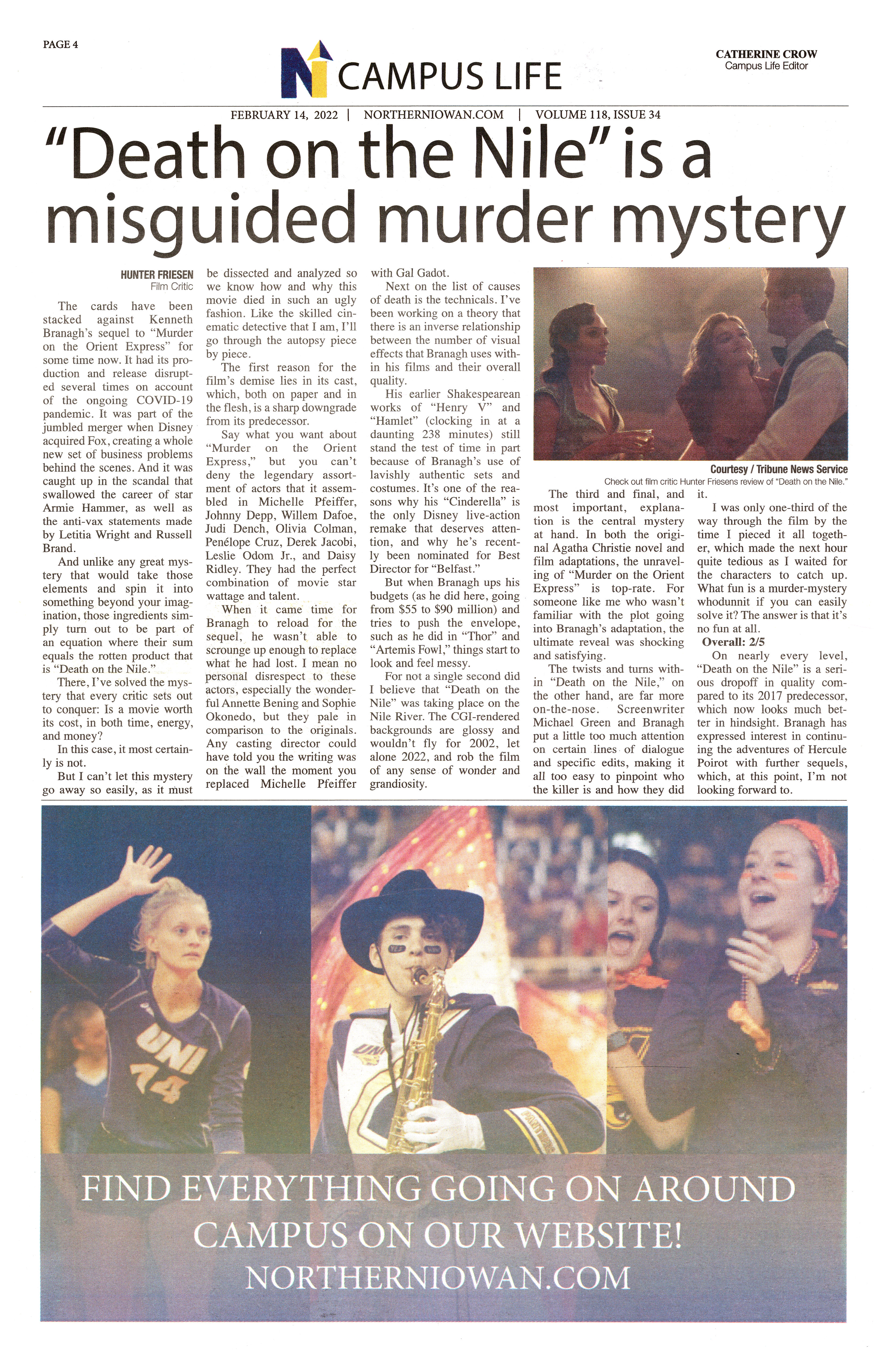 "Death on the Nile" is a misguided murder mystery "Death on the Nile" does not hold up to its predecessor, "Murder on the Orient Express," earning it a 2/5 rating; photo.