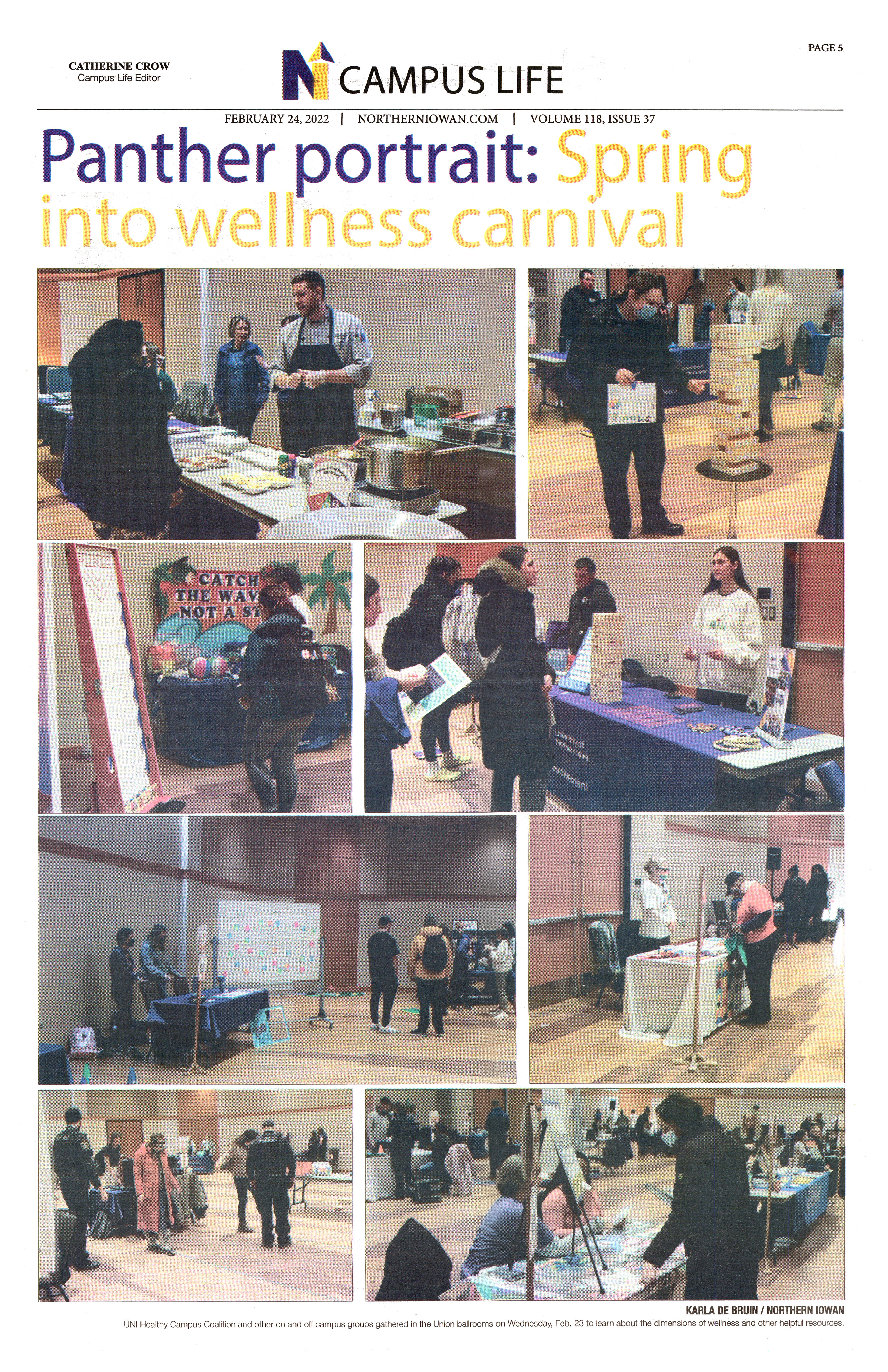 | Panther portrait: Spring into wellness carnival | The wellness carnival was held in the Maucker Union ballrooms and included the UNI Healthy Campus Coalition and other groups; photos. |