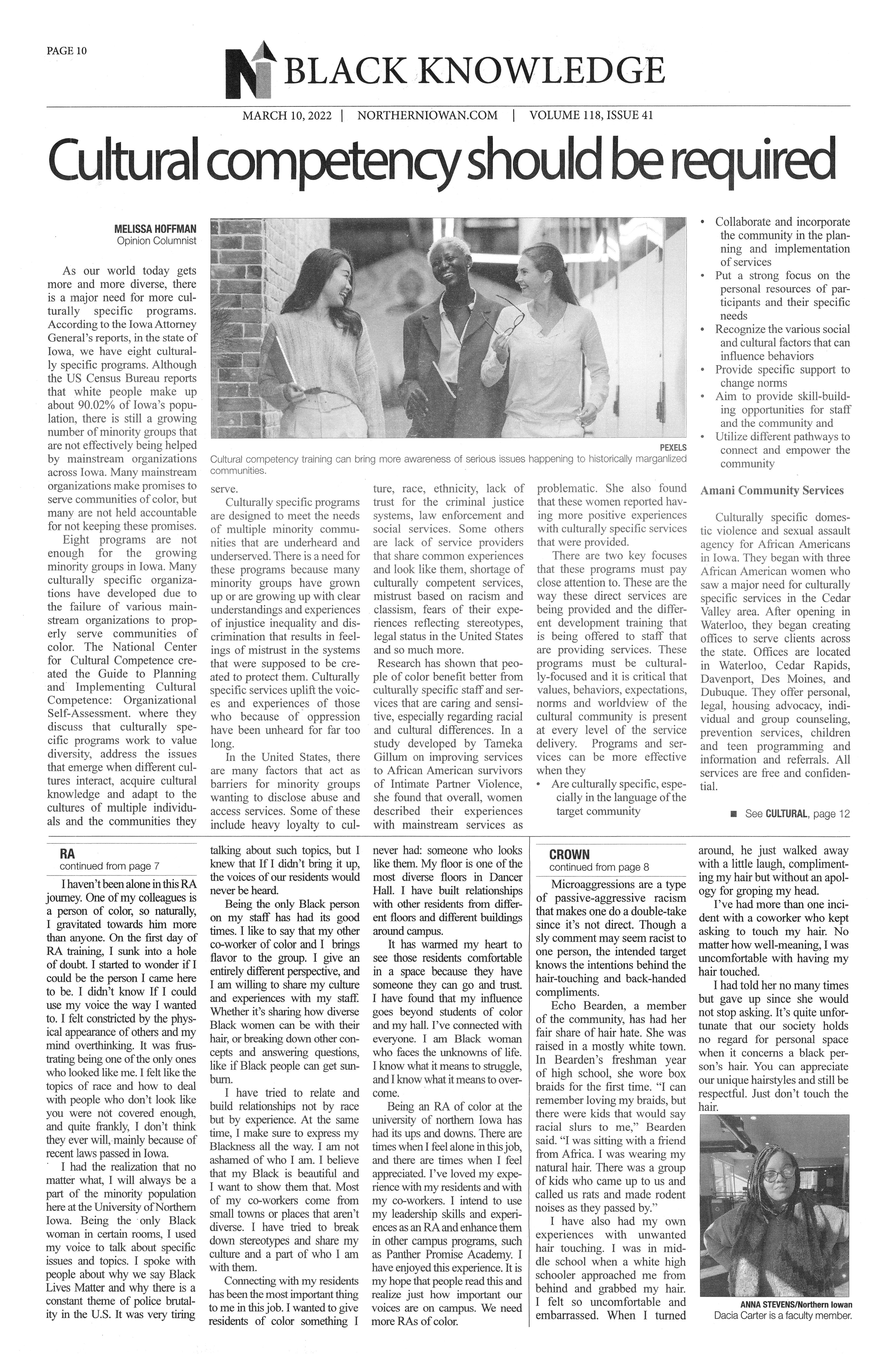 | Cultural competency should be required | Melissa Hoffman states their opinion that cultural competency should be required for all Iowans. Multiple Iowa programs are given as examples; photo. |