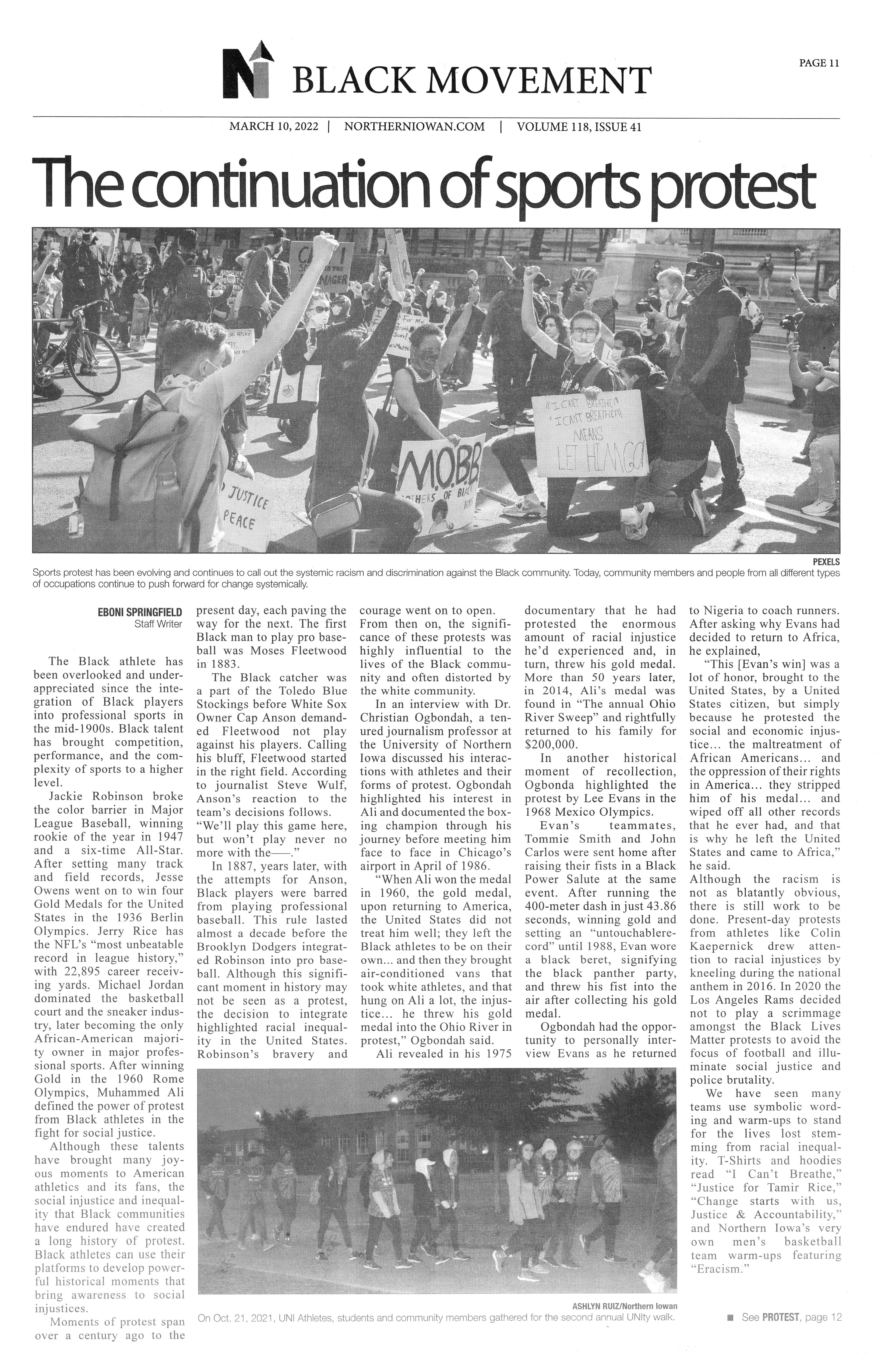 | The continuation of sports protest | The use of protests by black athletes throughout athletics history shows the racism embedded within it; photo. |